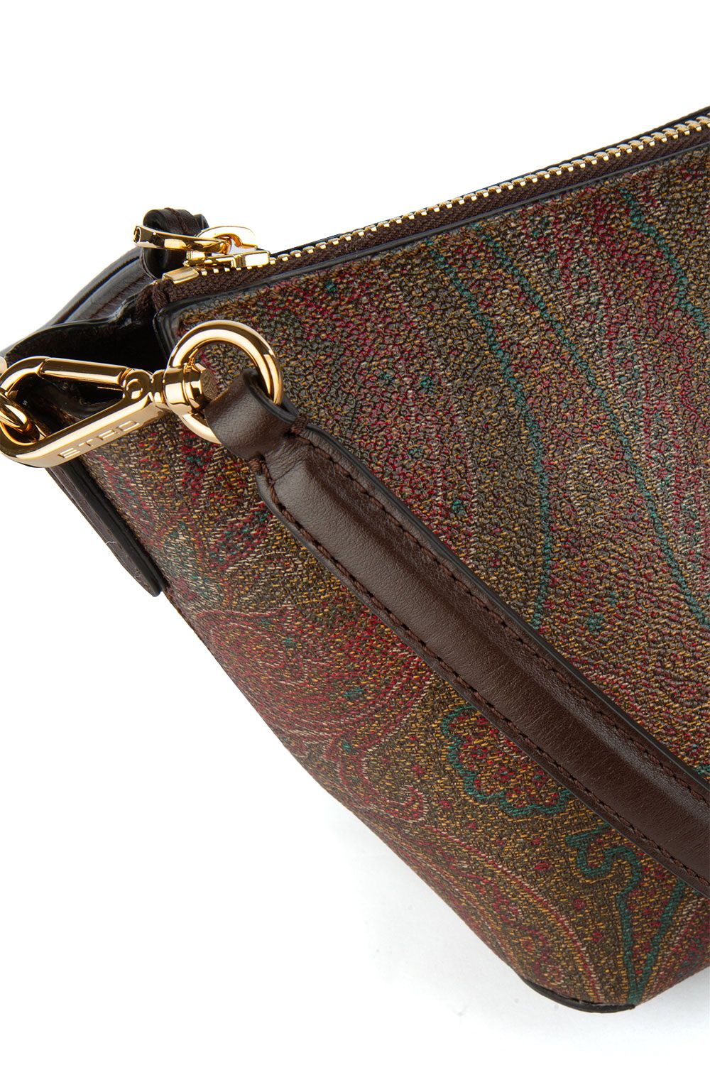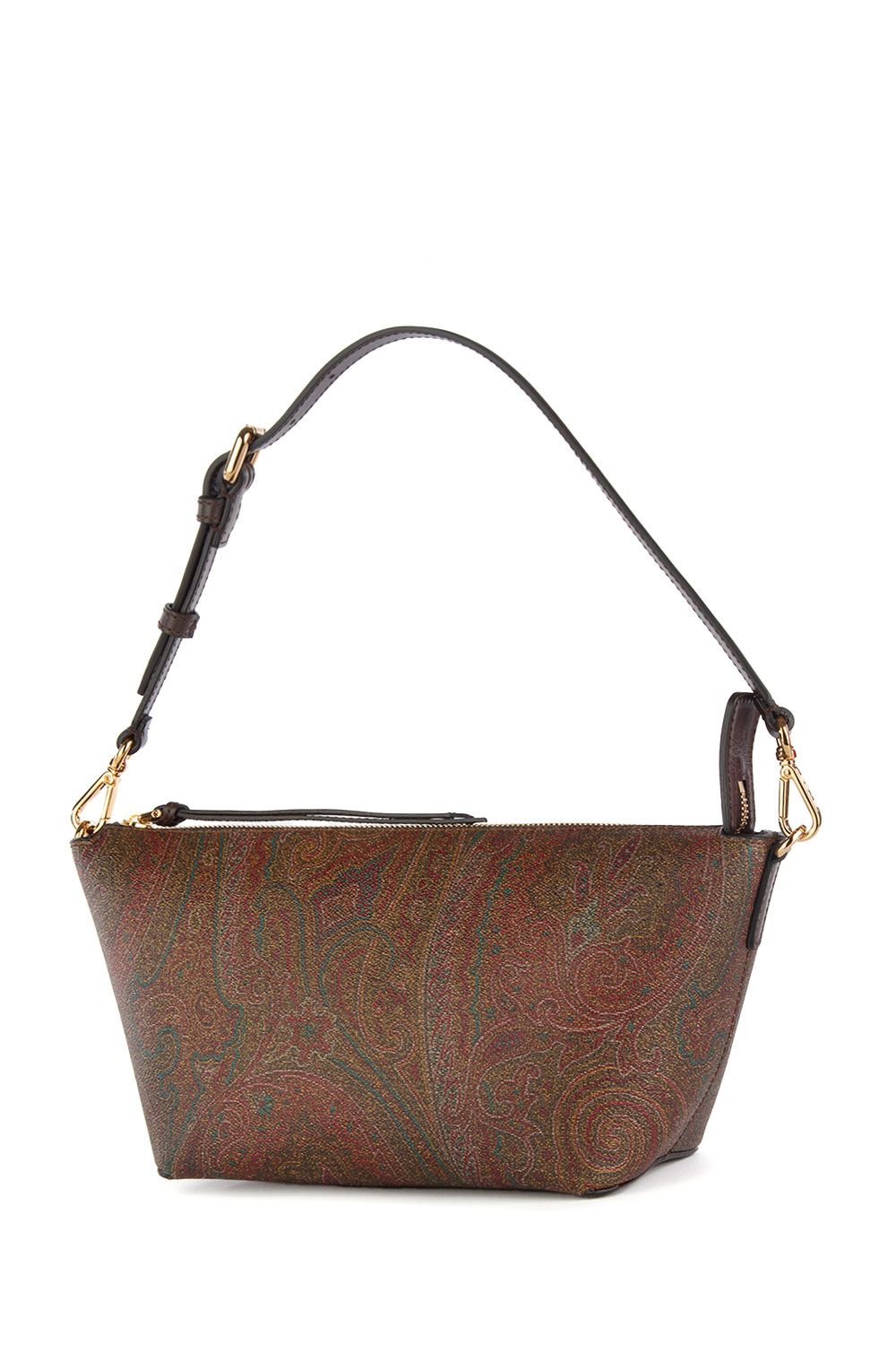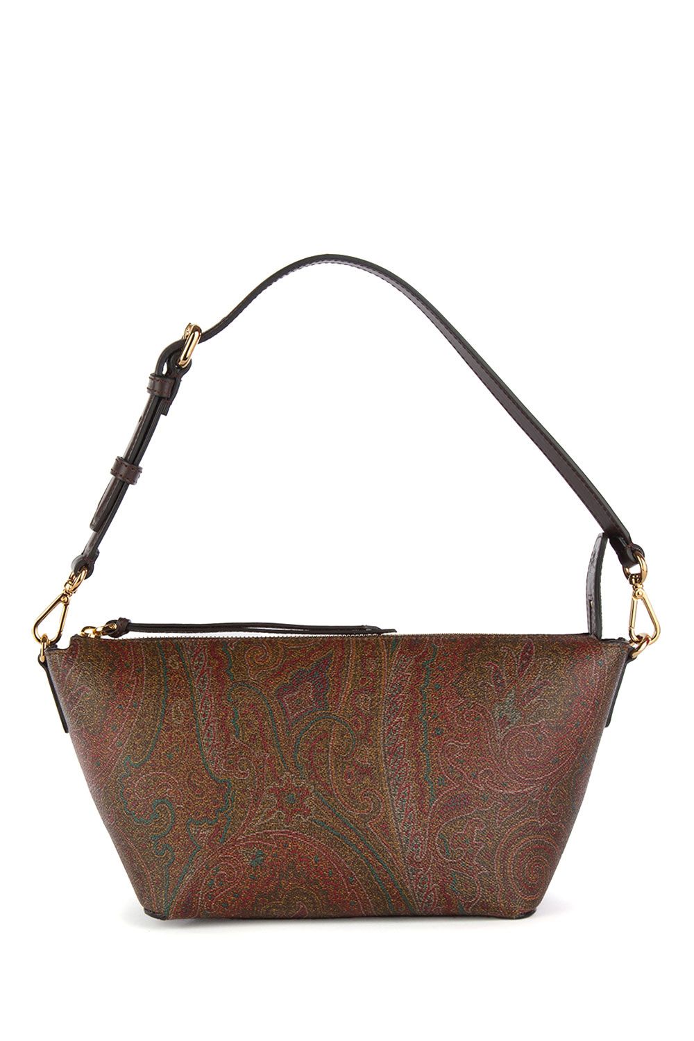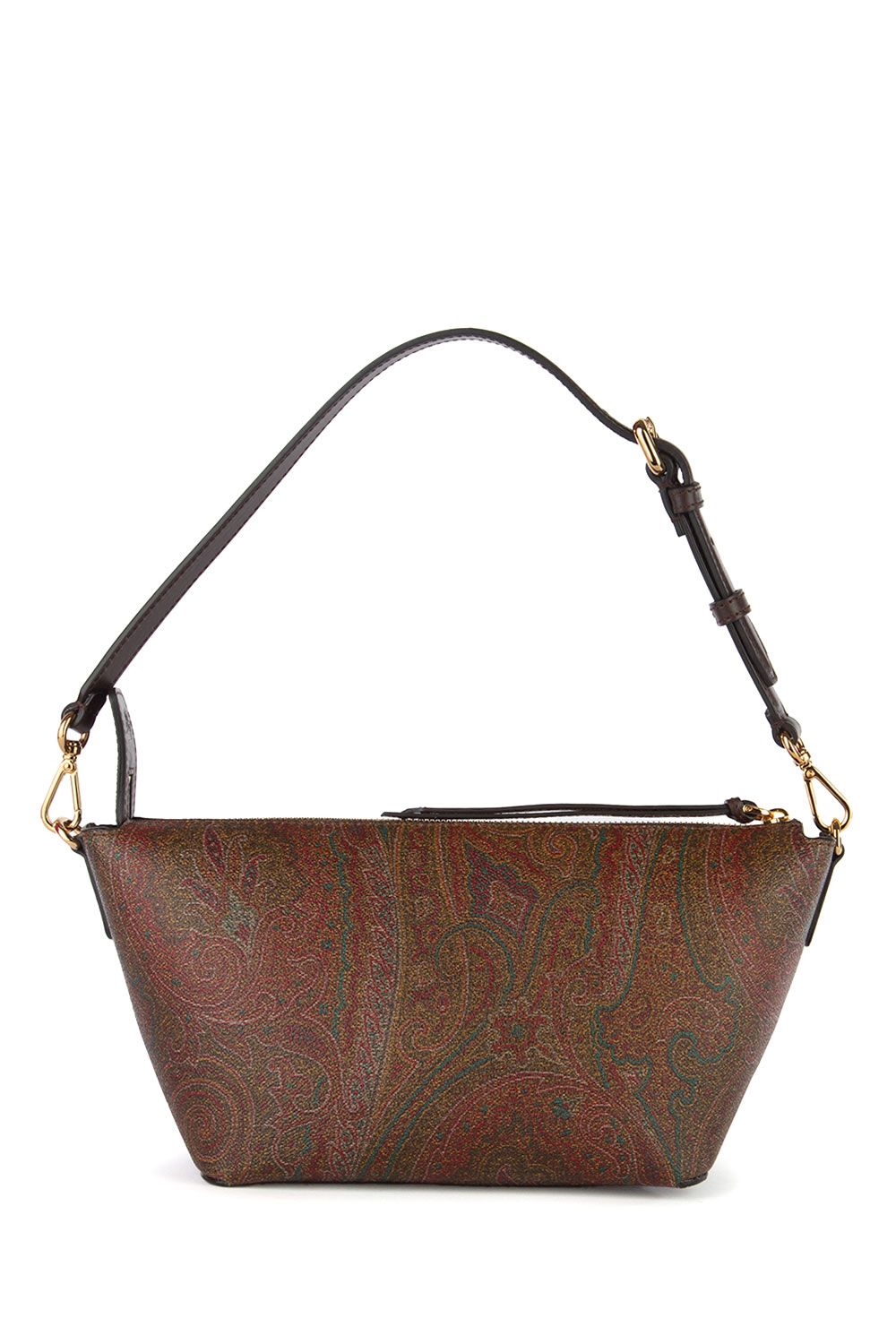 Borsa a spalla a barchetta in tessuto paisley jacquard, chiusura con cerniera, manico in pelle rimovibile, tracolla in pelle regolabile e rimovibile , laccio da polso, accessori metallici con finitura dorata ed interno in suede