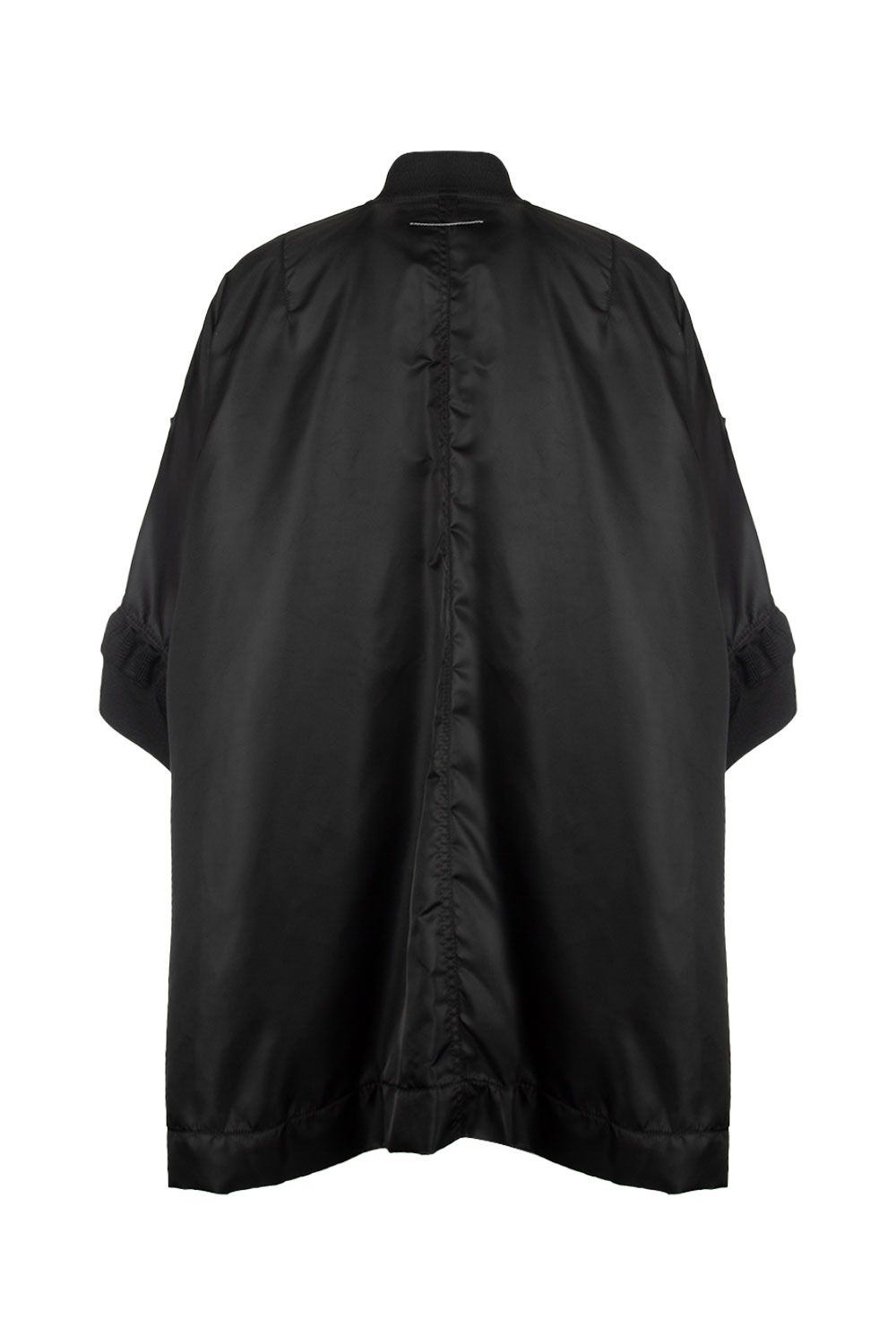Bomber oversize a cappa in nylon nero con bordi in maglia tono su tono, apertura frontale con zip e tasche applicate con patta