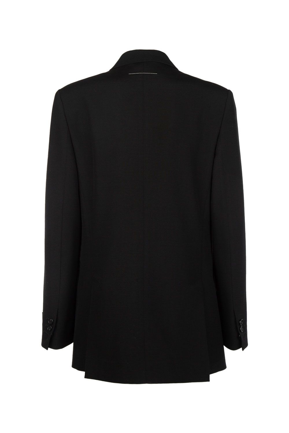 Giacca doppiopetto in fresco lana nero con revers a lancia e maniche lunghe