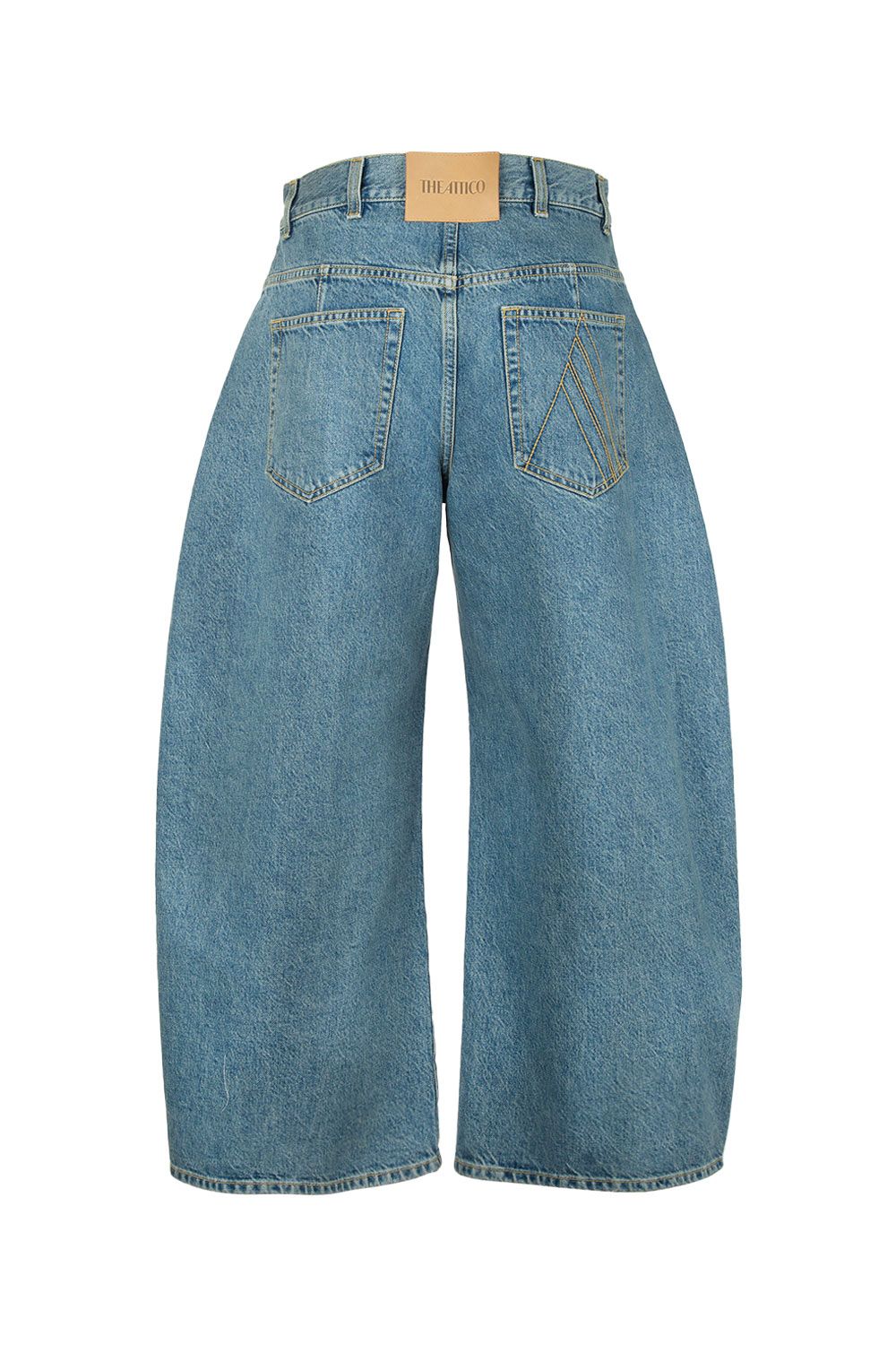 Jeans in denim di cotone azzurro a gamba balloon crop