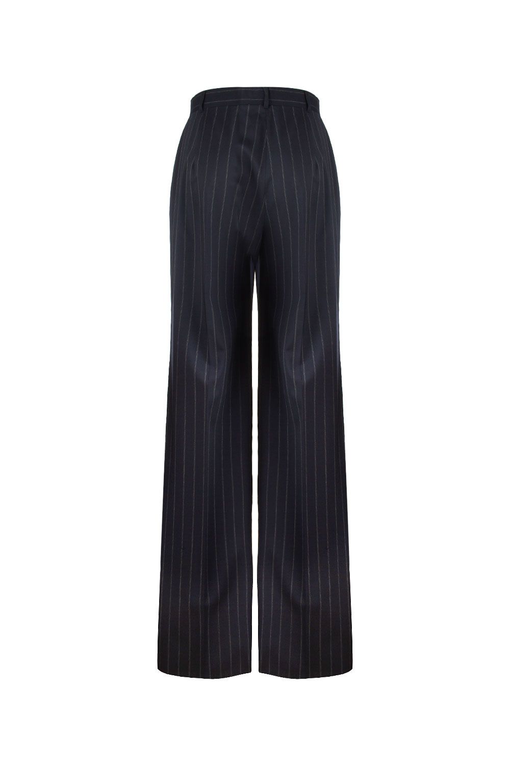 Pantaloni in fresco lana blu navy gessati bianchi a gamba dritta