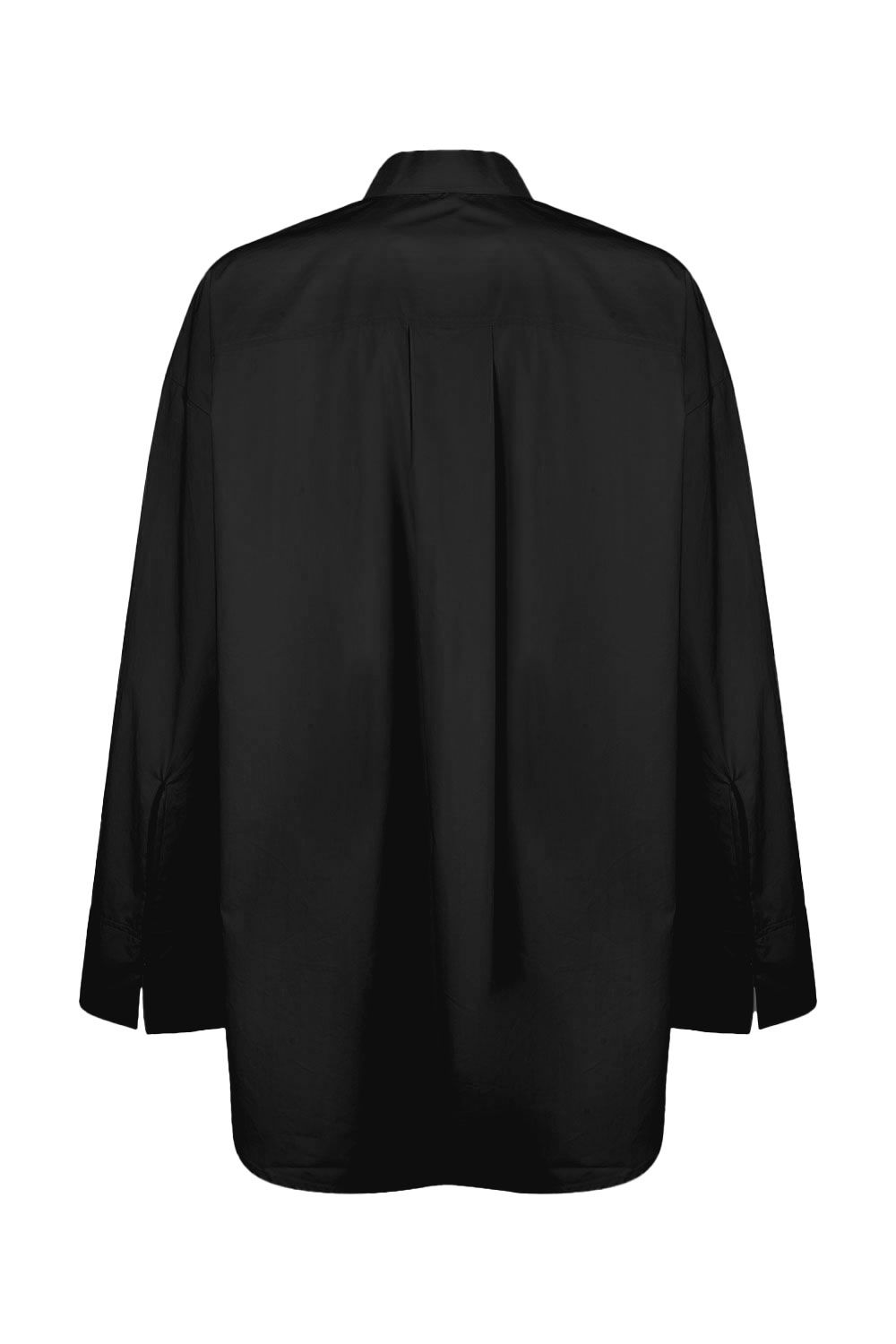 Camicia oversize in mussola di cotone nera con colletto classico, apertura frontale con bottoni e maniche lunghe con polsini