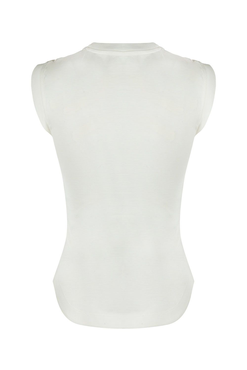 Top in cotone bianco con logo frontale ricamato a contrasto