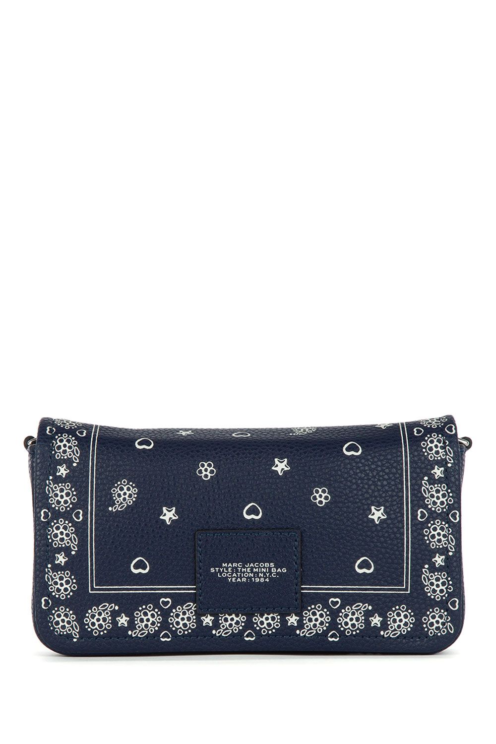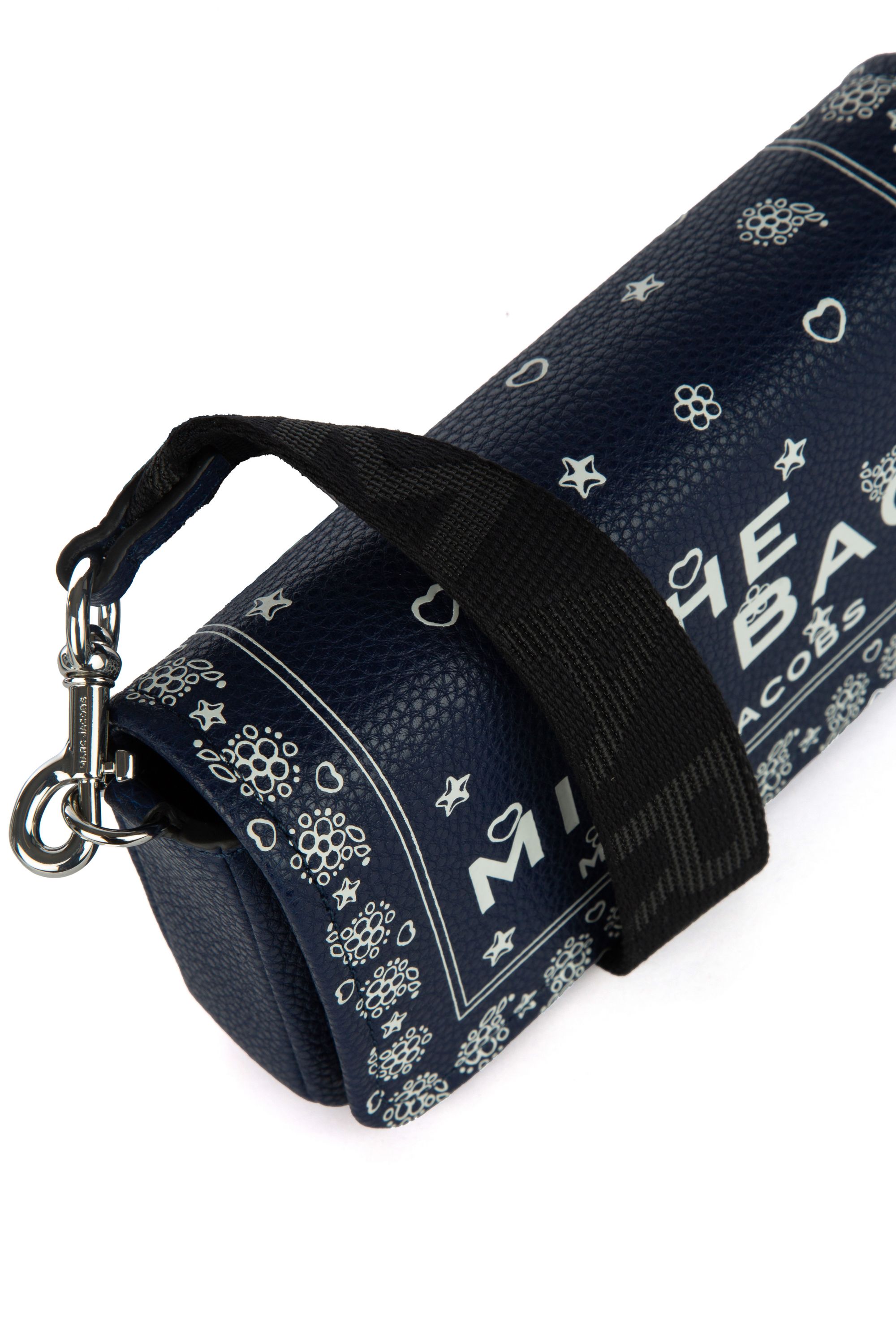 Borsa a tracolla in pelle blu stampa bandana e impreziosita da logo stampato frontalmente, chiusura con patta con calamita e tracolla regolabile e removibile in cotone