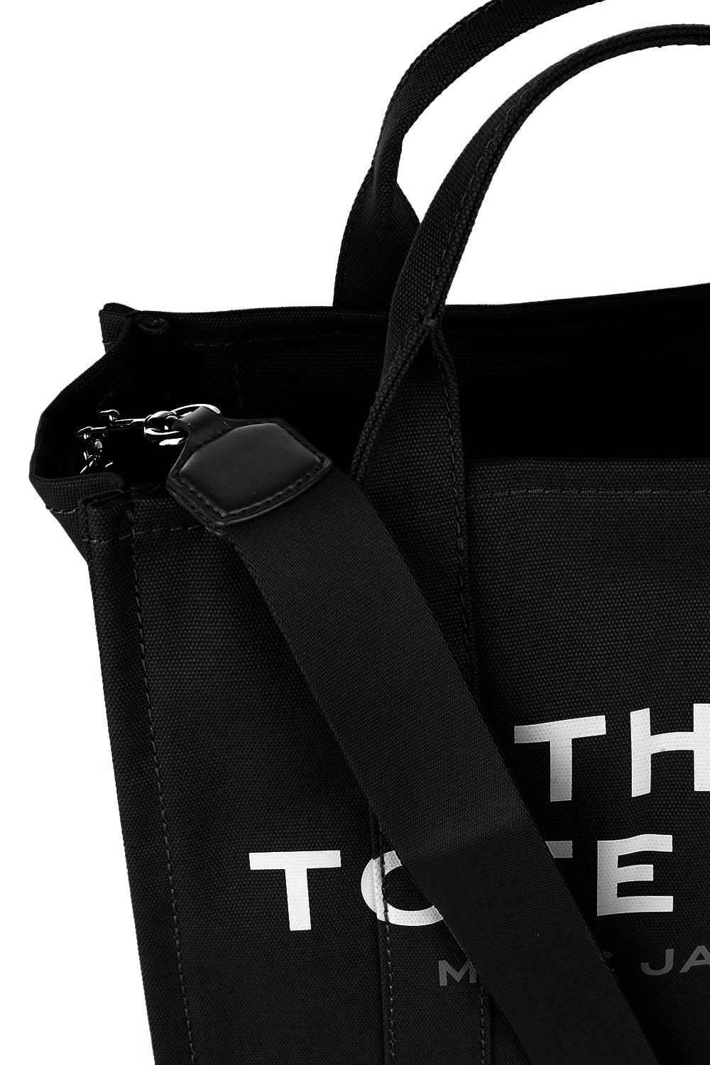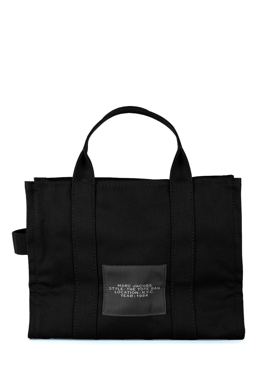 Borsa a mano in canvas nera e impreziosita da logo stampato frontalmente, chiusura interna con zip, doppio manico e tracolla regolabile e removibile in tessuto