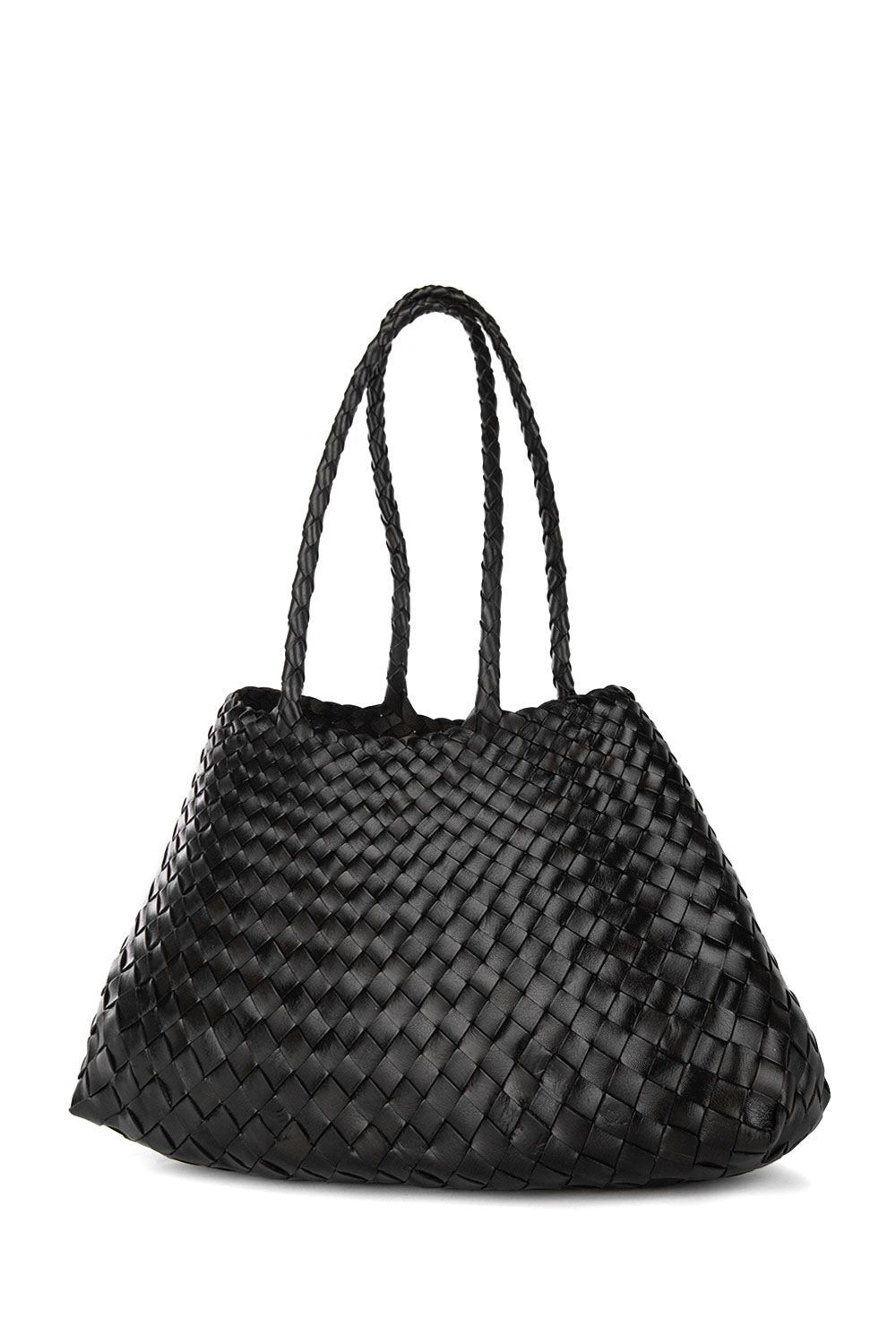 Borsa a spalla in pelle intrecciata nero con doppi manici