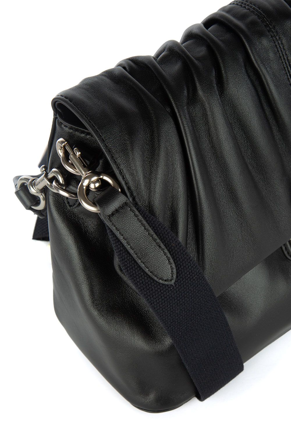 Borsa a spalla in pelle nera con chiusura a scatto frontale, manico piatto e tracolla regolabile e removibile in cotone