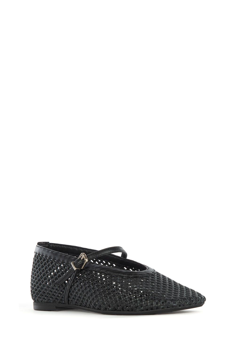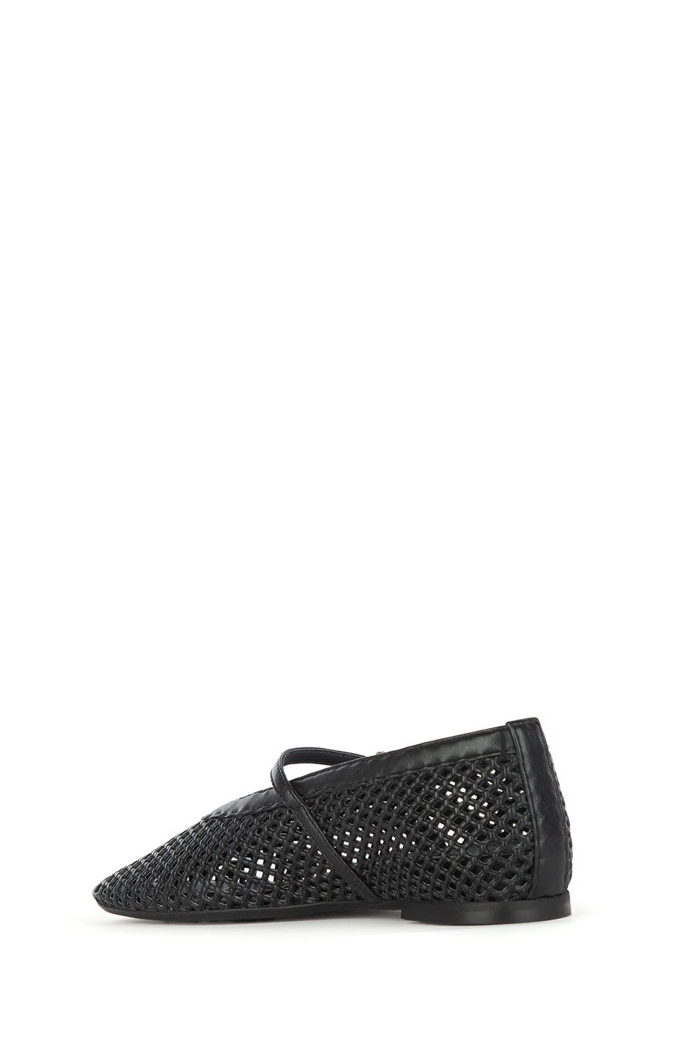 Ballerine in pelle traforata nere con punta leggermente quadrata, scollo tondo, cinturino sul collo del piede e suola in gomma