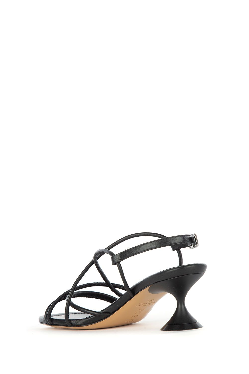 Sandali in pelle nera con fascia frontale, incrocio sul collo del piede, punta tonda e tacco scultura di altezza 55mm