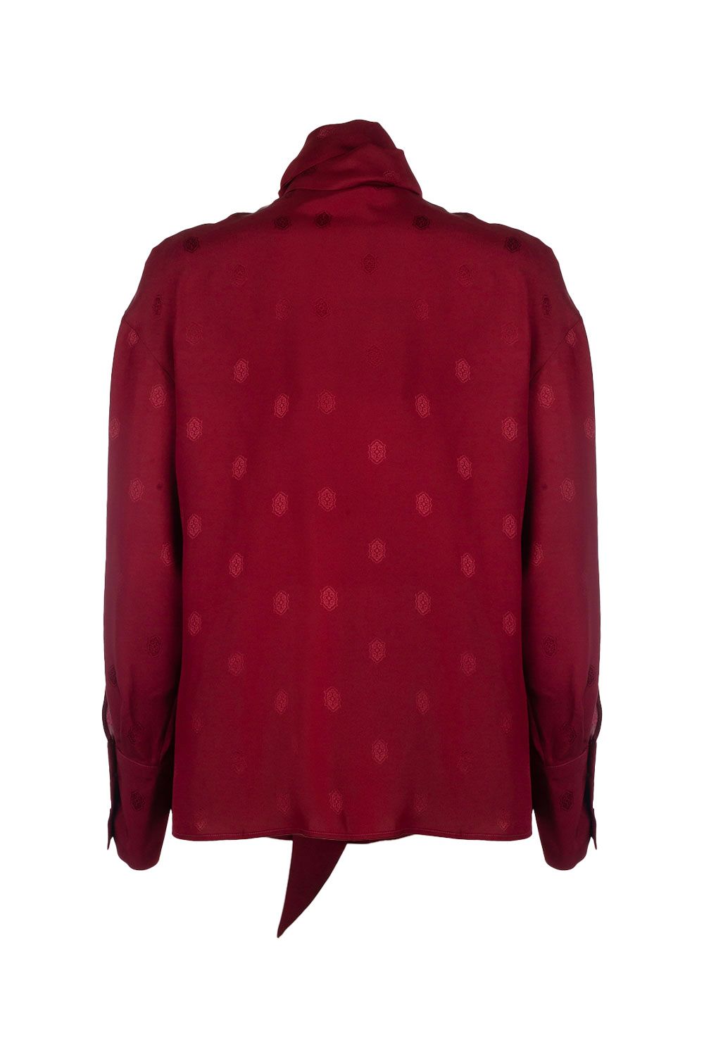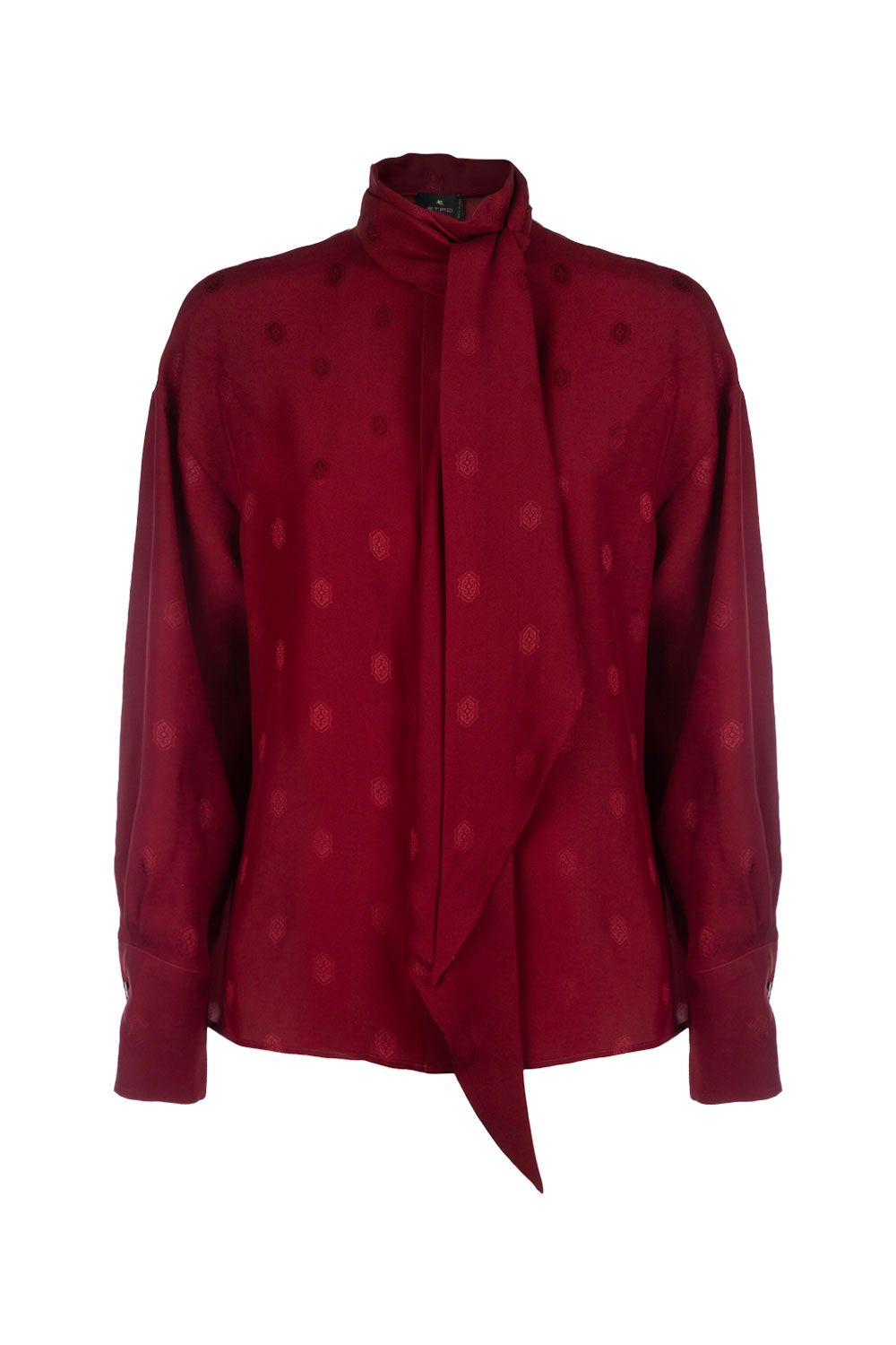 Camicia in seta jacquard burgundy , con foulard integrato annodabile sul davanti, maniche lunghe polsini con bottoni, e chiusura con bottoni nascosti