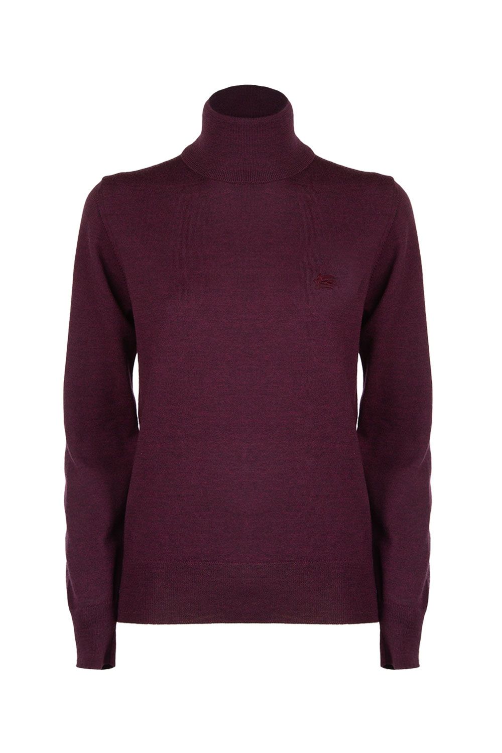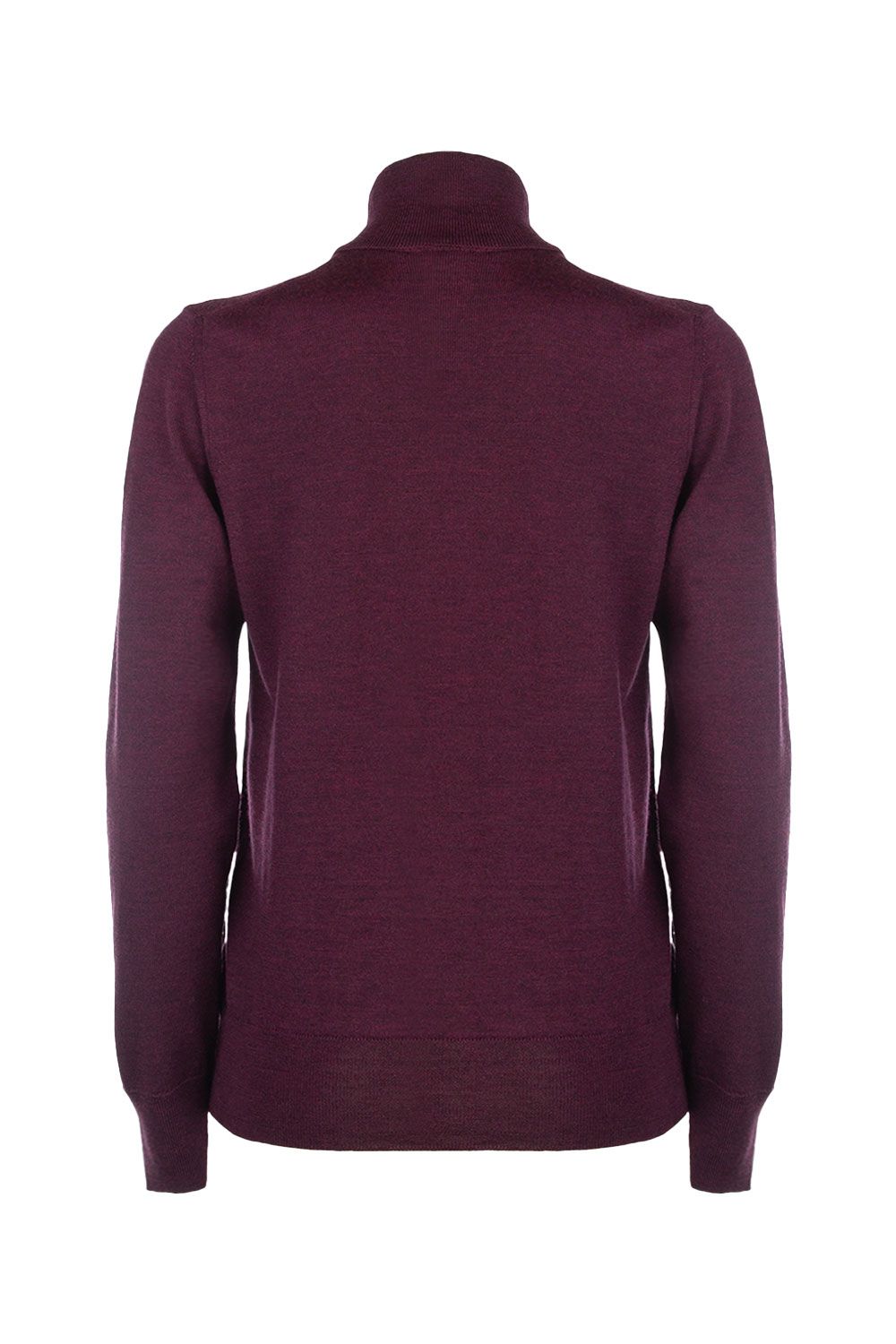 Maglia collo alto in lana burgundy, polsini e fondo coste sottili, logo ricamato frontale tono su tono