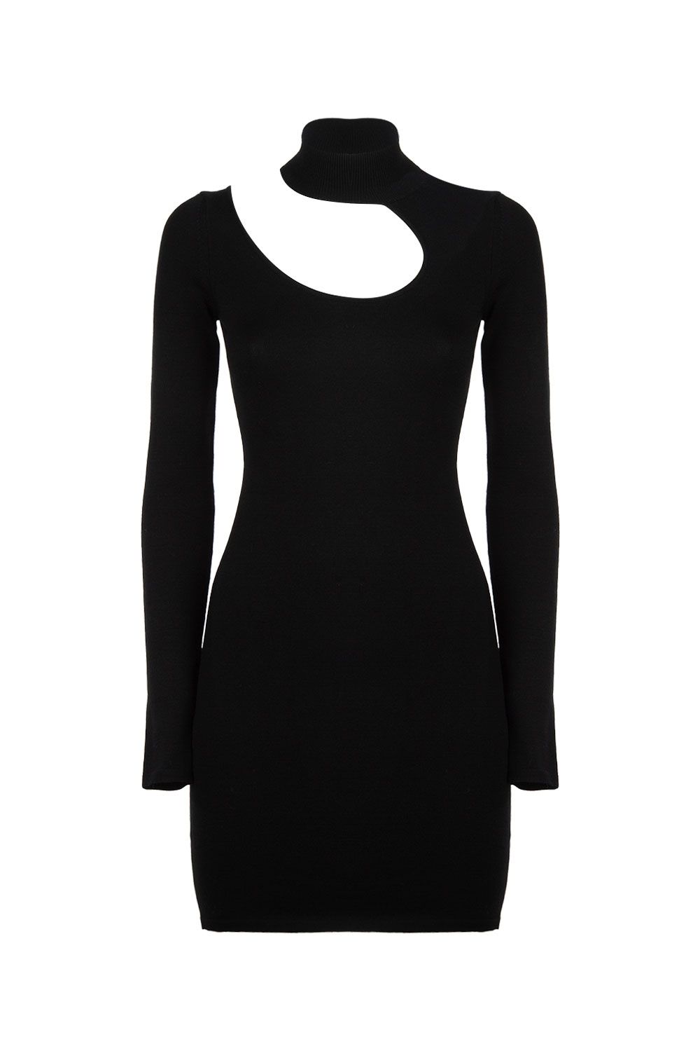 Abito corto aderente in misto viscosa nera con dettaglio cut out frontale