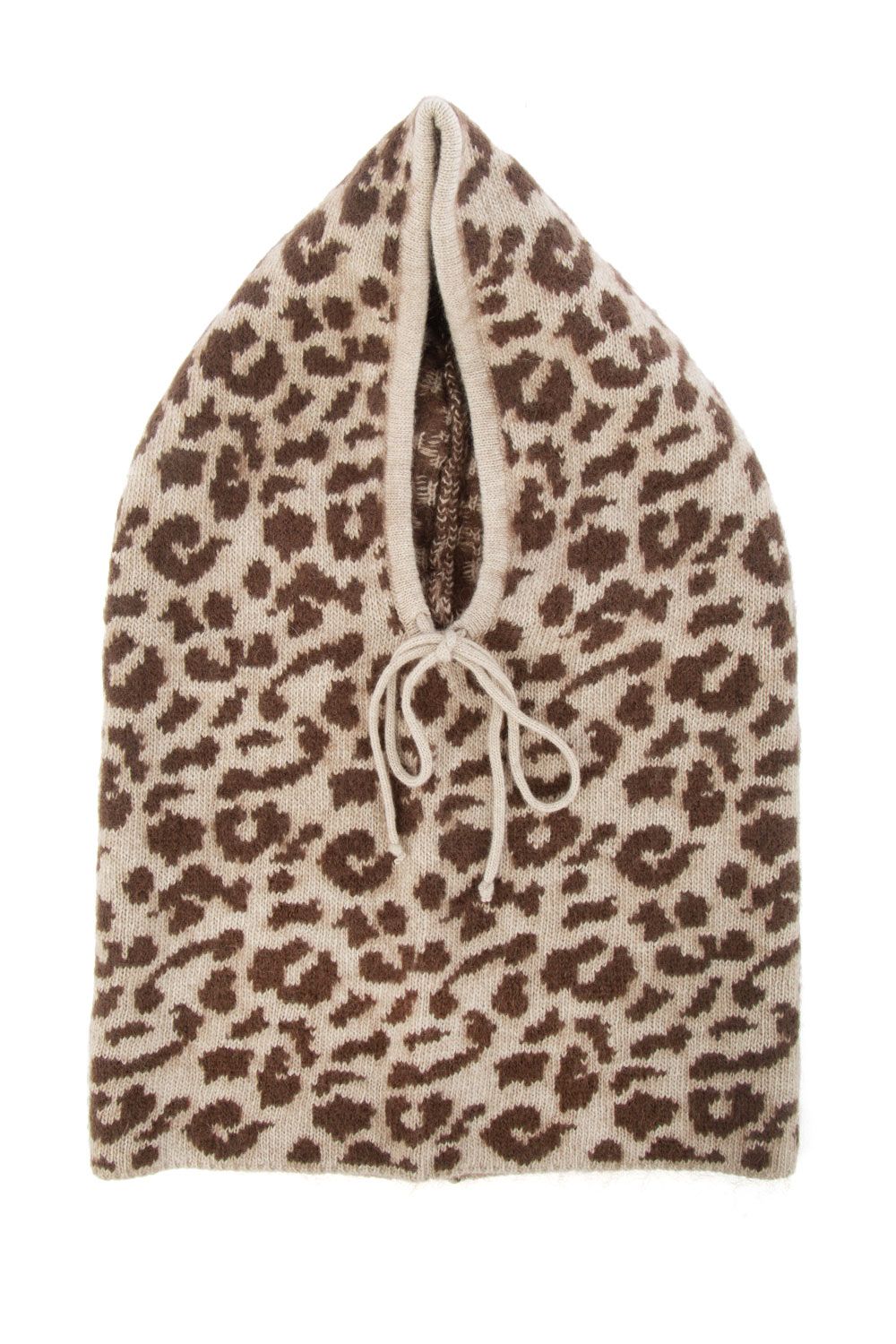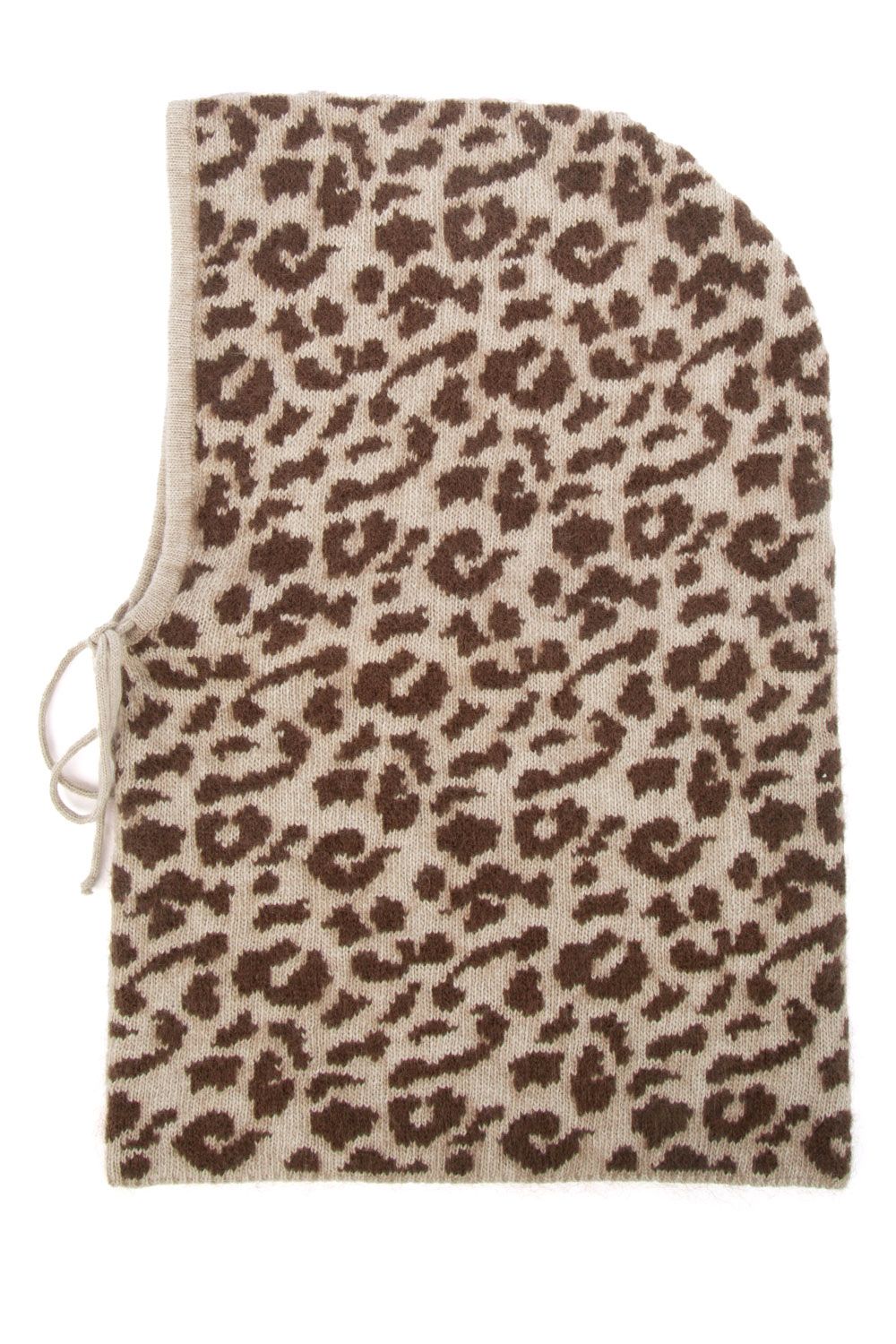 Balaclava in misto lana e mohair beige e marrone, chiusura con coulisse