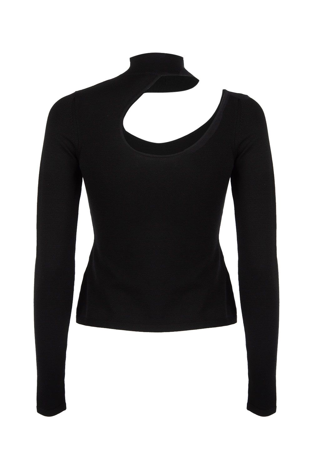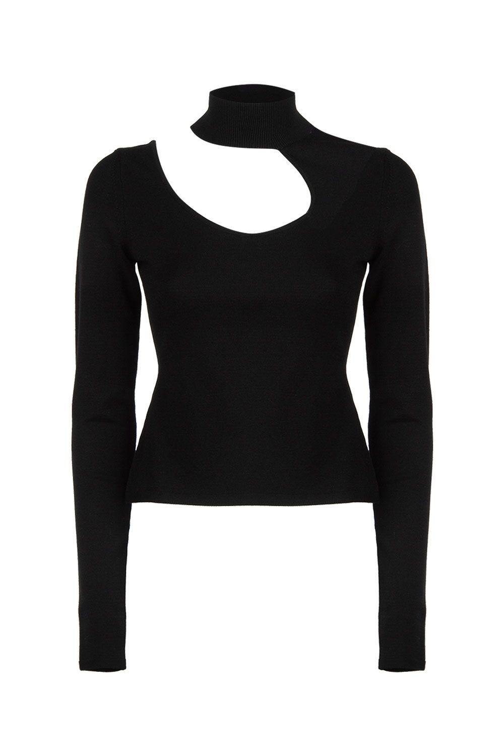 Maglia slim in misto viscosa nera con dettaglio cut out frontale