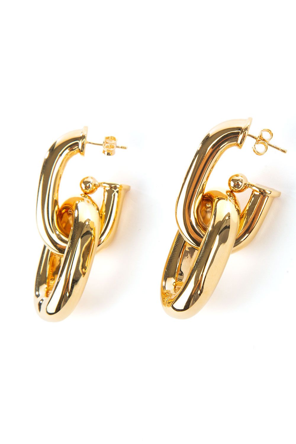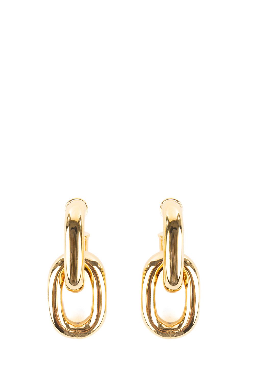 Orecchini in ottone a doppio cerchio oro, chiusura con farfallina e “R” incisa