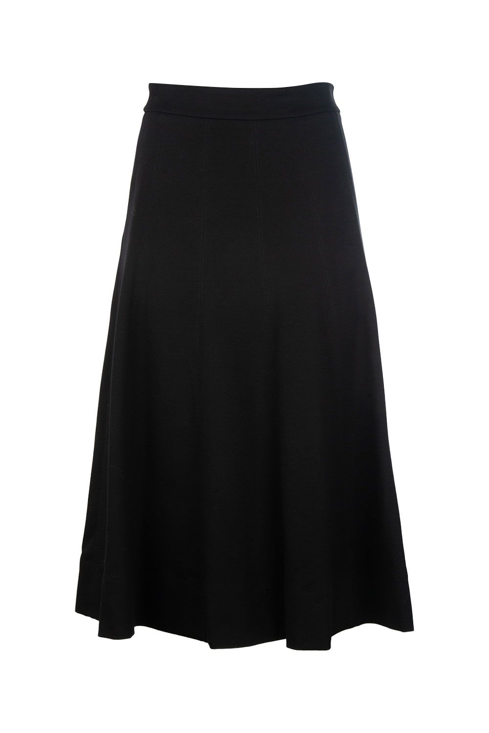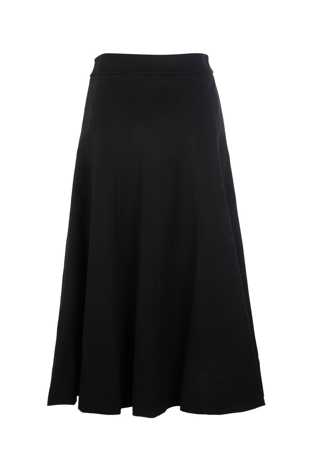 Gonna midi leggermente a ruota in viscosa nera, chiusura con zip laterale e fodera nera in viscosa