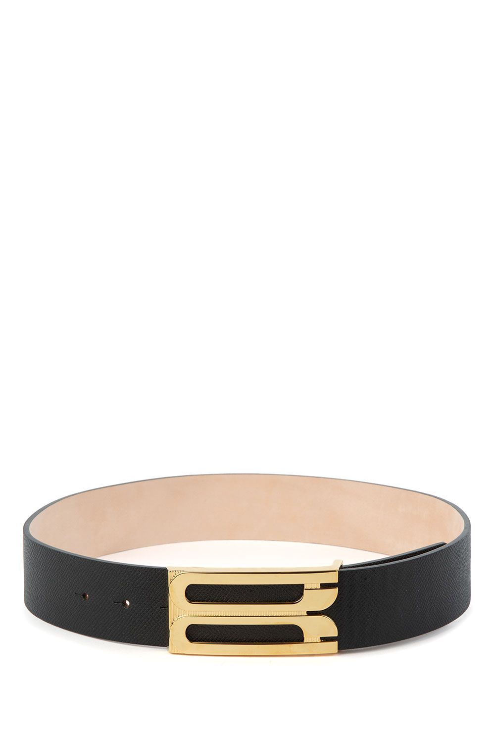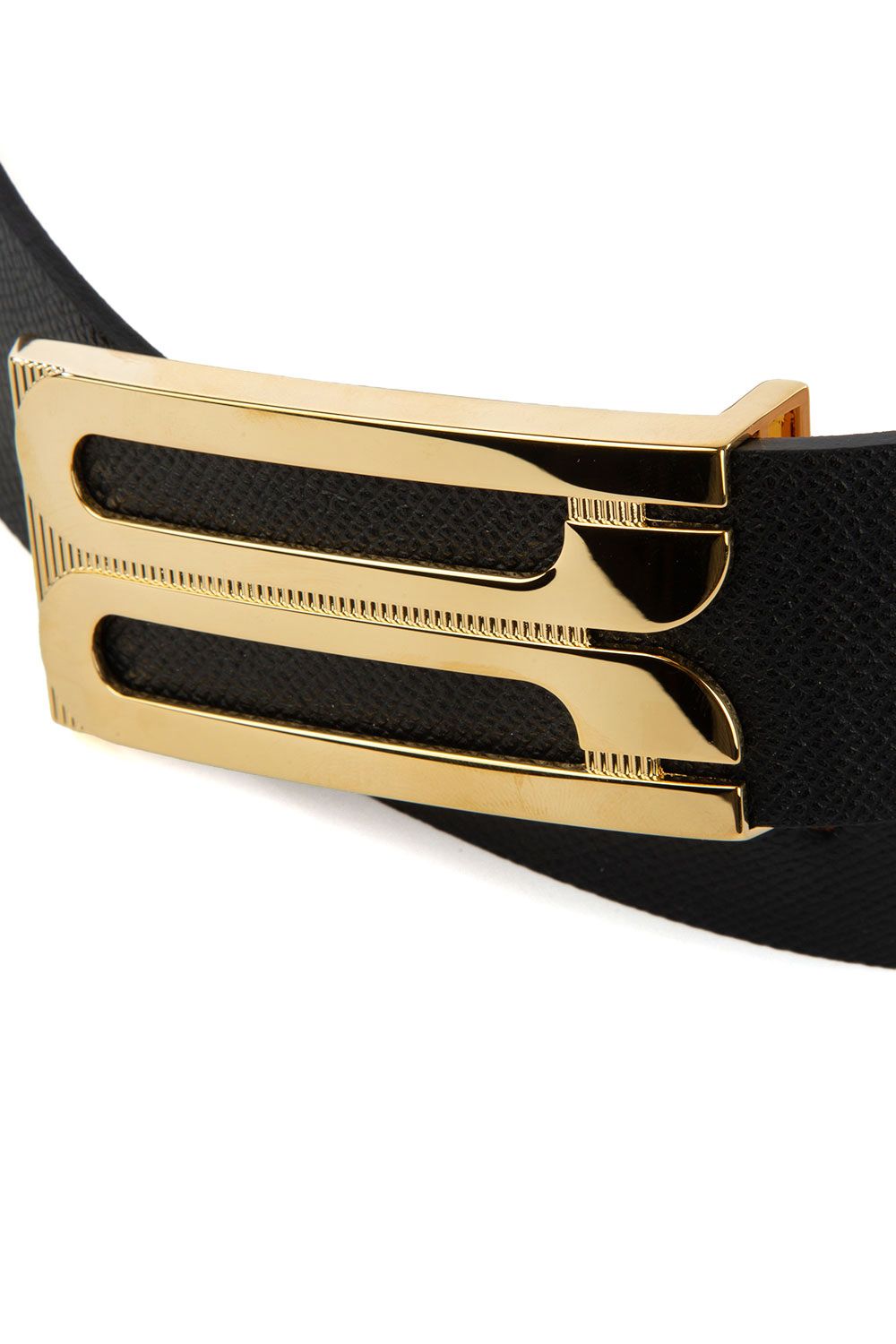 Cintura in pelle nera, fibbia logo in metallo dorato frontale e regolabile, altezza 2.5 cm