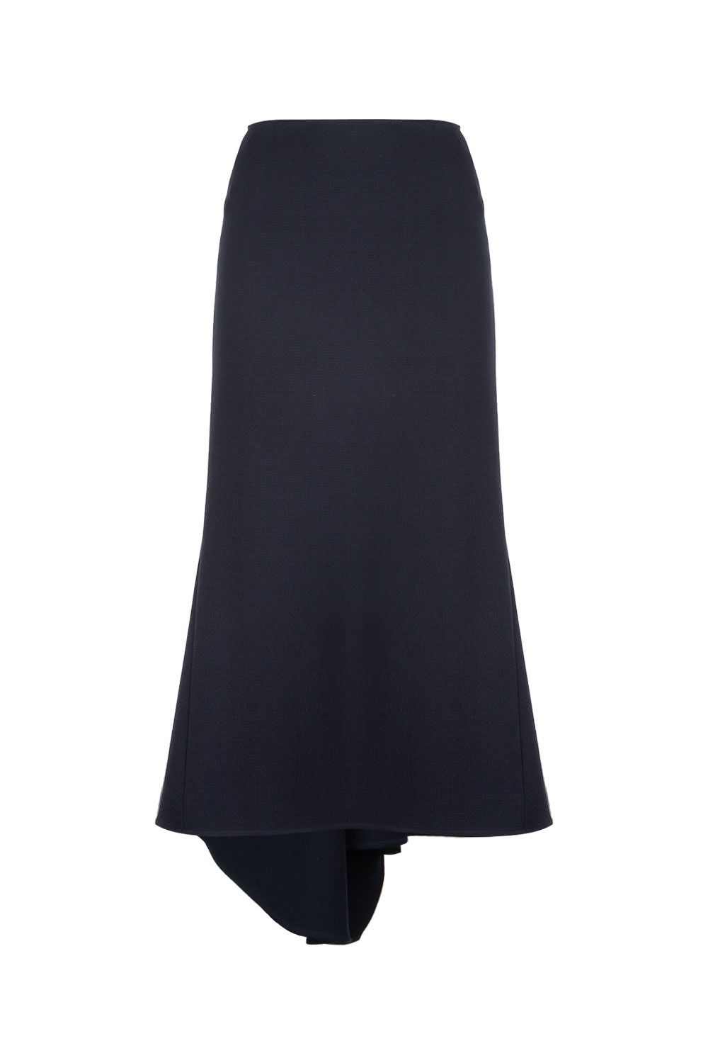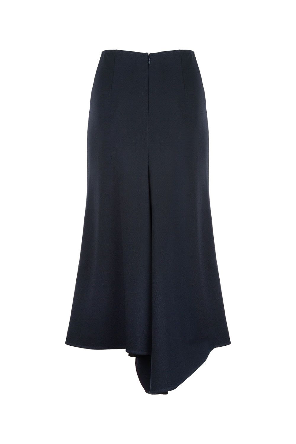 Gonna midi in misto lana blu navy, chiusura con cerniera sul retro, asimmetrica con spacchetto sul retro