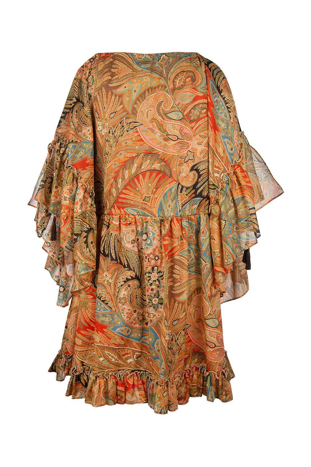 Abito corto in mussola di cotone stampa Paisley con vita elasticata con coulisse e maniche corte ampie