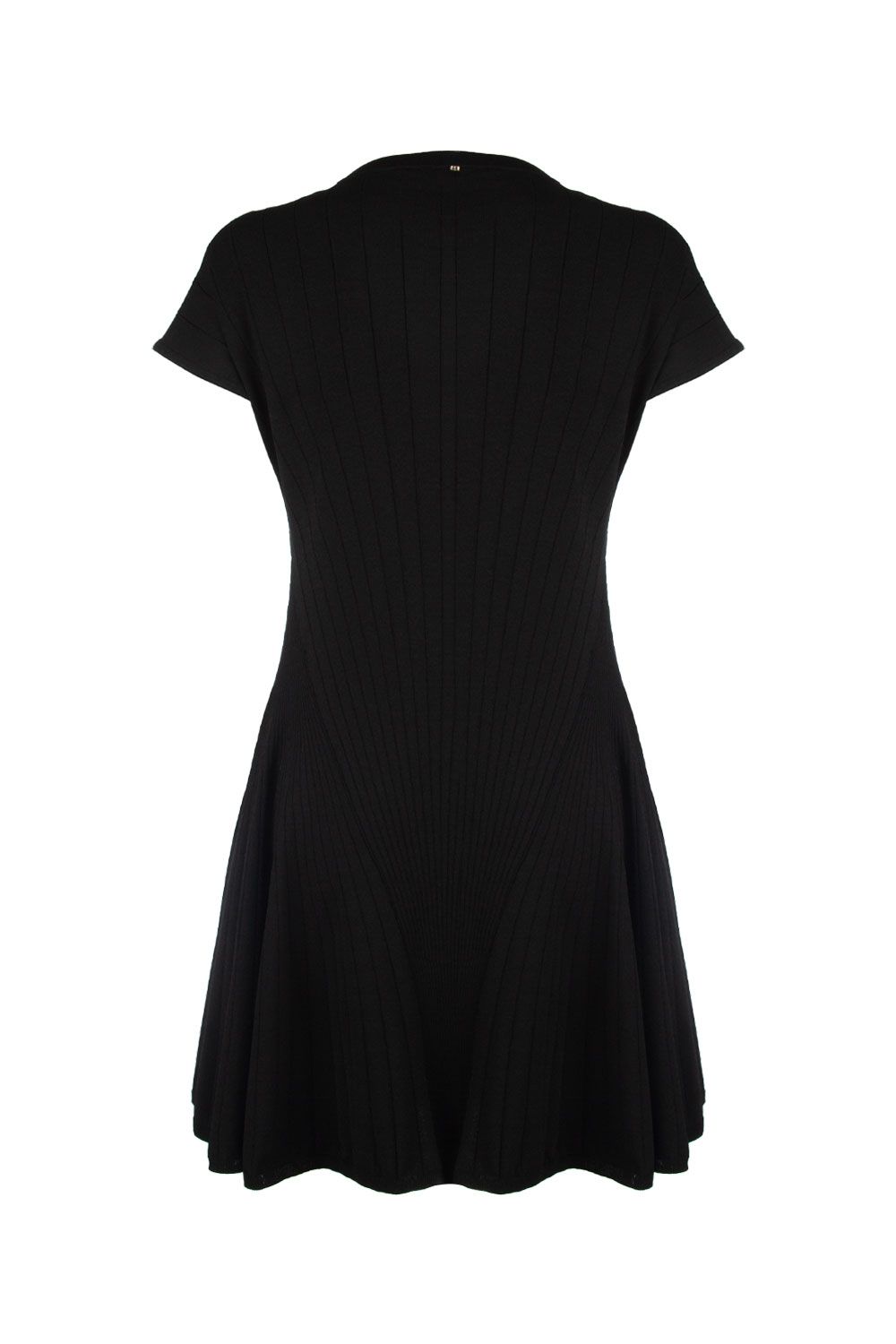 Abito corto girocollo in maglia di viscosa nera con maniche corte ad alatta e gonna svasata