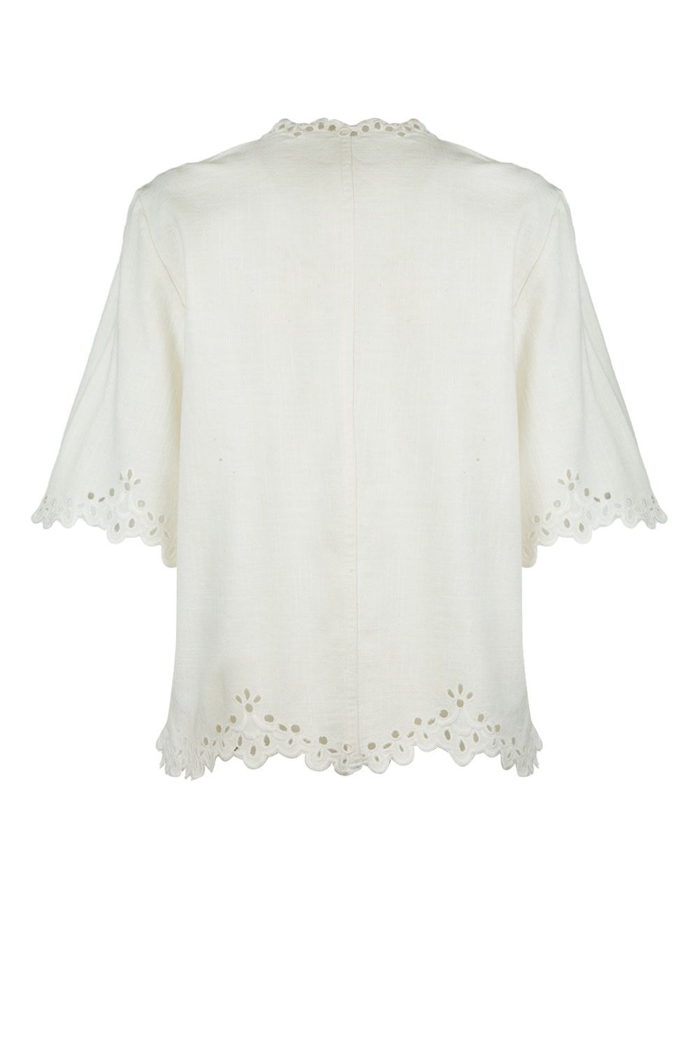 Blusa in cotone bianco con scollo a V decorata con sangallo