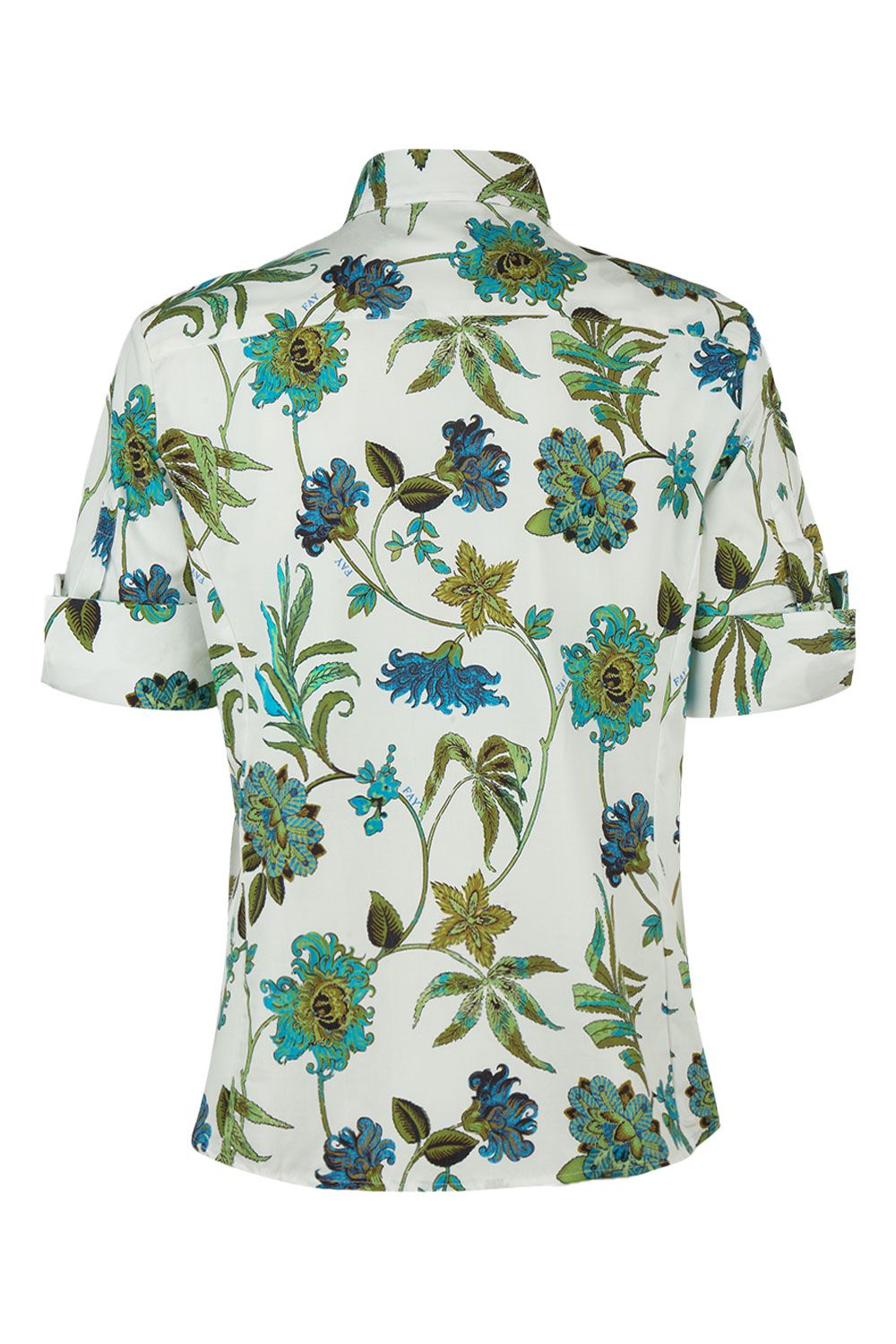 Camicia slim in popeline di cotone stampa floreale con colletto classico, apertura frontale con bottoni, tasche con patta applicate nella parte frontale e maniche corte con polsini alti