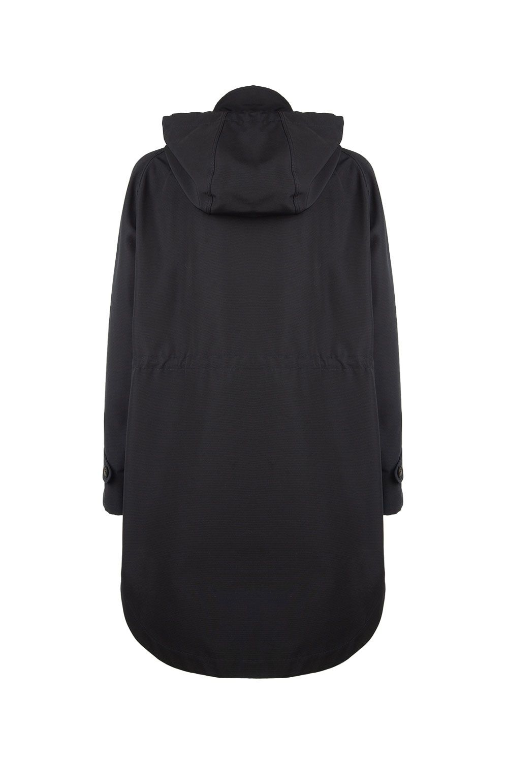 Parka in cotone tecnico idrorepellente blu navy con apertura frontale con zip, bottoni automatici nascosti e gancio, coulisse in vita, cappuccio e maniche lunghe