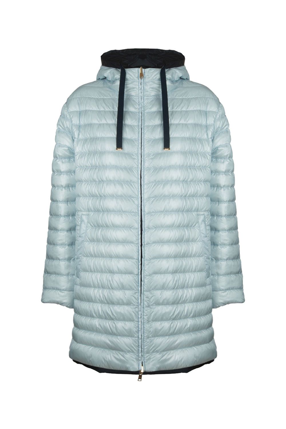 Parka reversibile in nylon blu e piumino azzurro con zip e cappuccio
