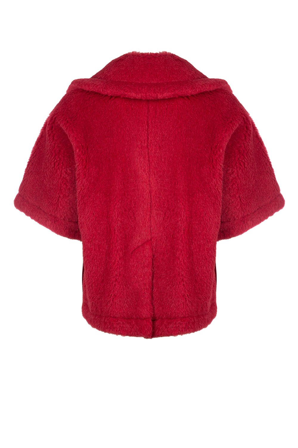 Cappa boxy in Teddy di alpaca e lana rosso con maniche corte a kimono, colletto ed apertura frontale con bottoni