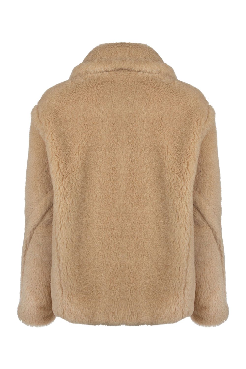 Giaccone in Teddy di alpaca e lana albino con maniche lunghe, colletto classico ed apertura frontale con bottoni
