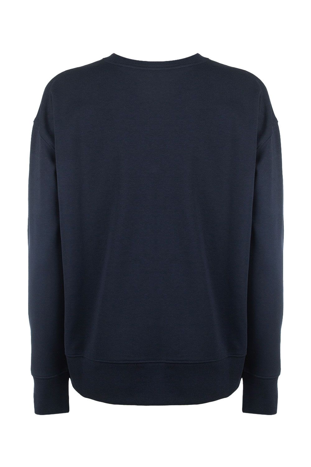 Felpa oversize girocollo in jersey di cotone leggero blu navy con logo frontale ricamato bianco