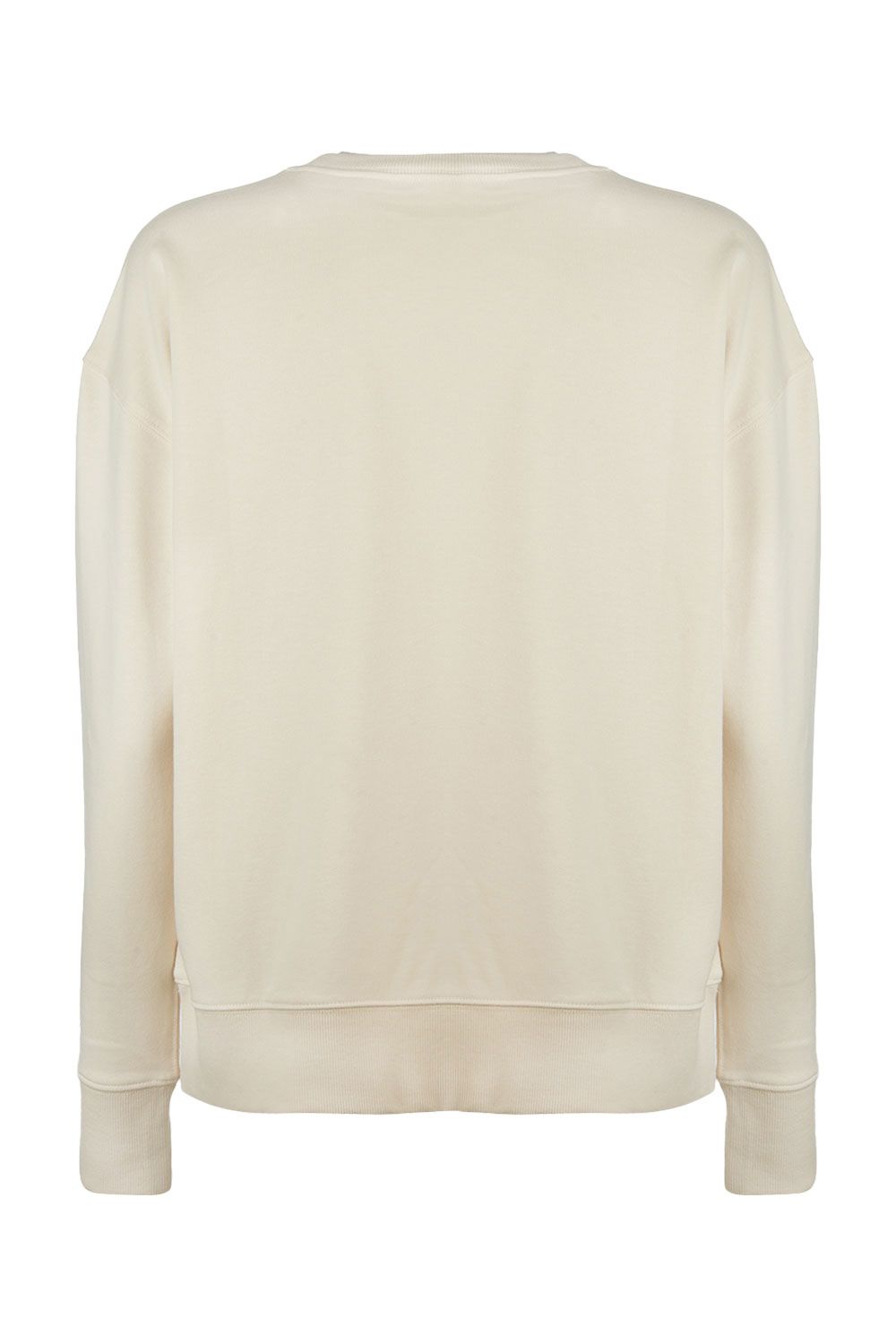 Felpa oversize girocollo in jersey di cotone leggero panna con logo frontale ricamato blu navy