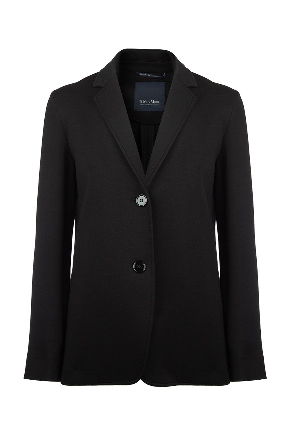 Giacca monopetto in jersey scuba nera con revers a lancia