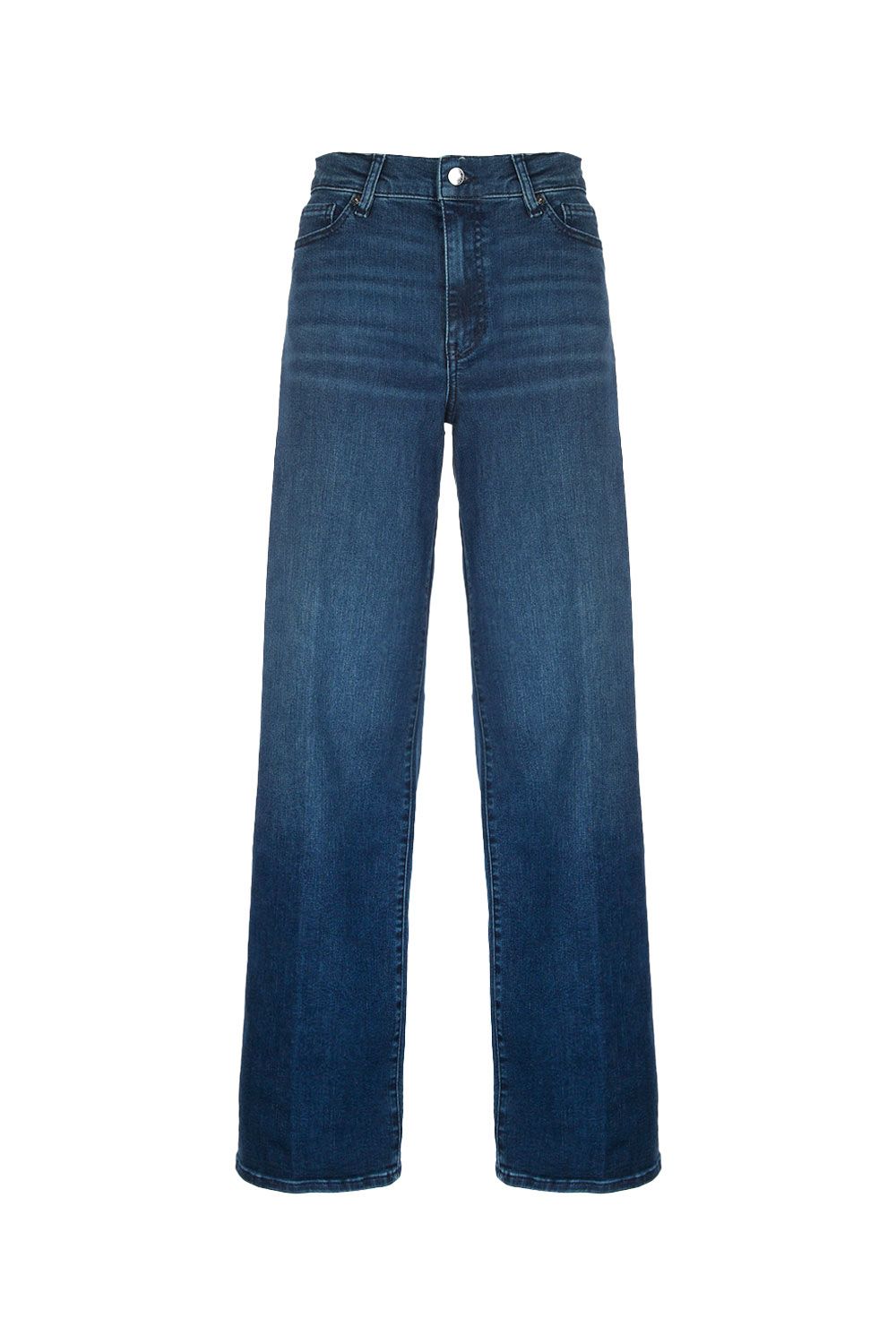 Jeans in denim stretch blu a gamba dritta crop e vita media
