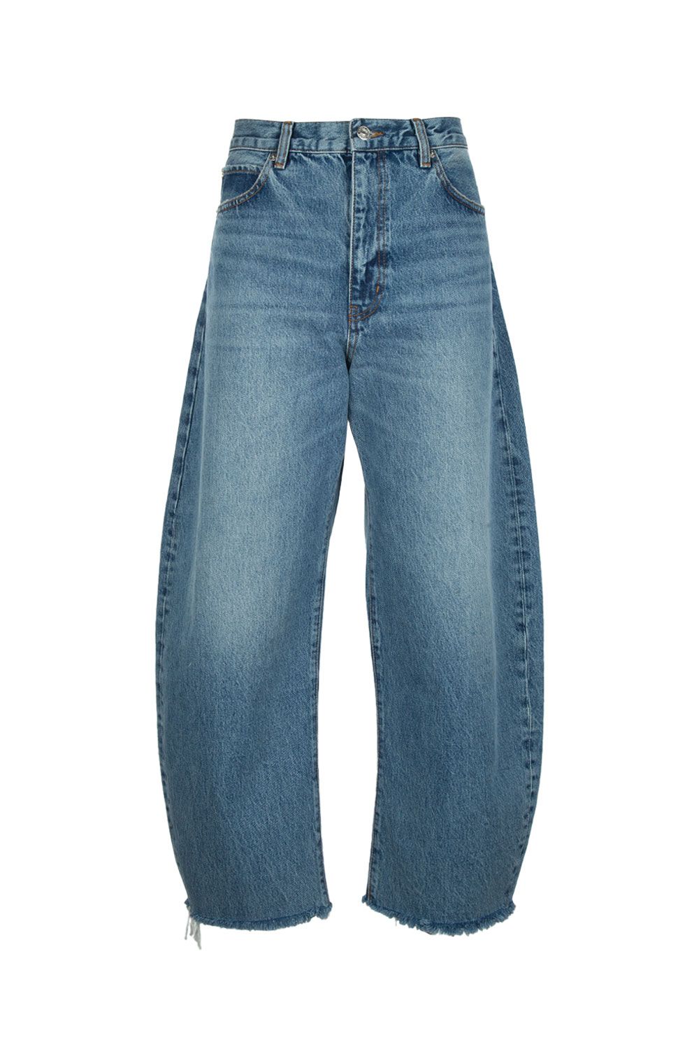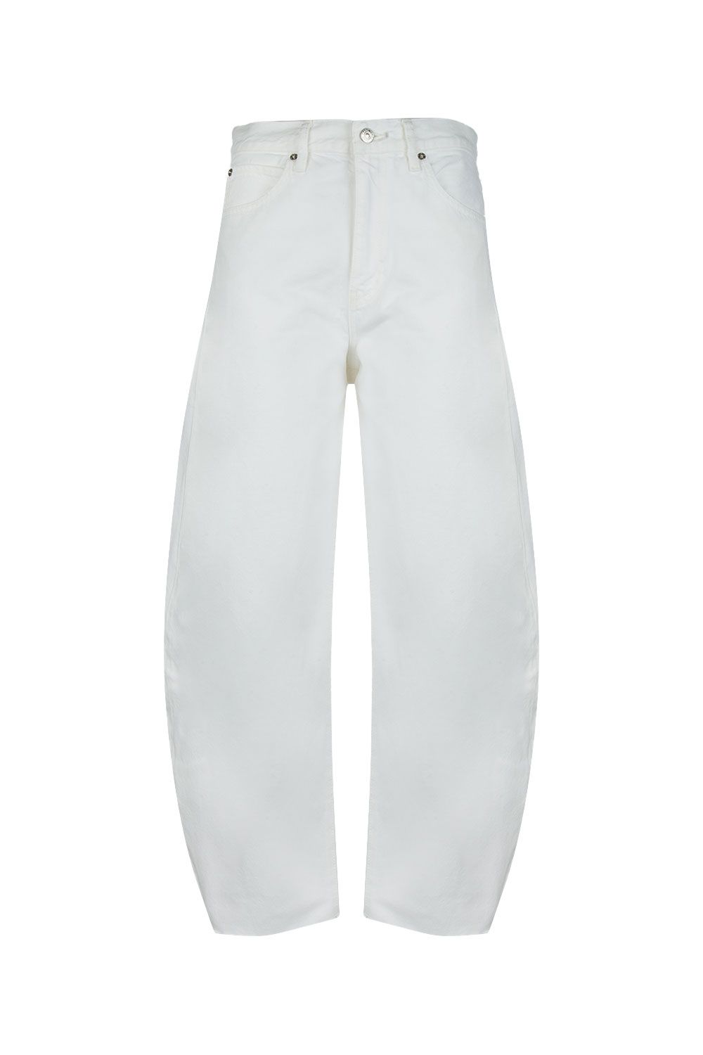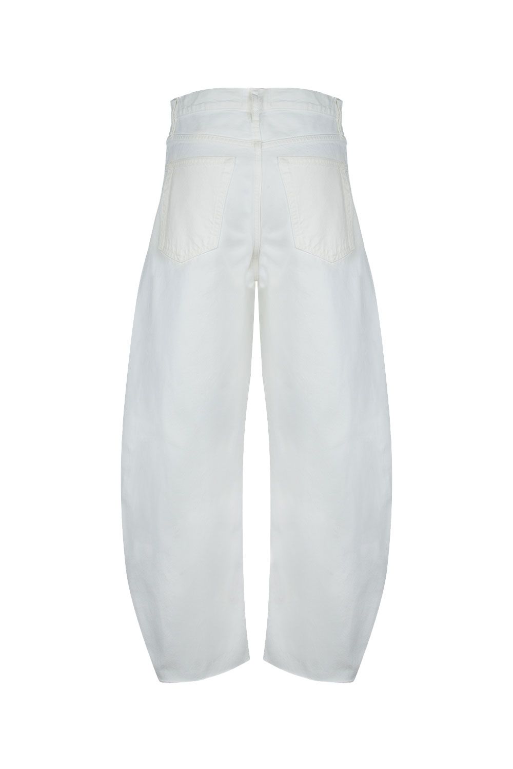 Jeans in denim di cotone bianco a gamba balloon crop con orlo sfrangiato