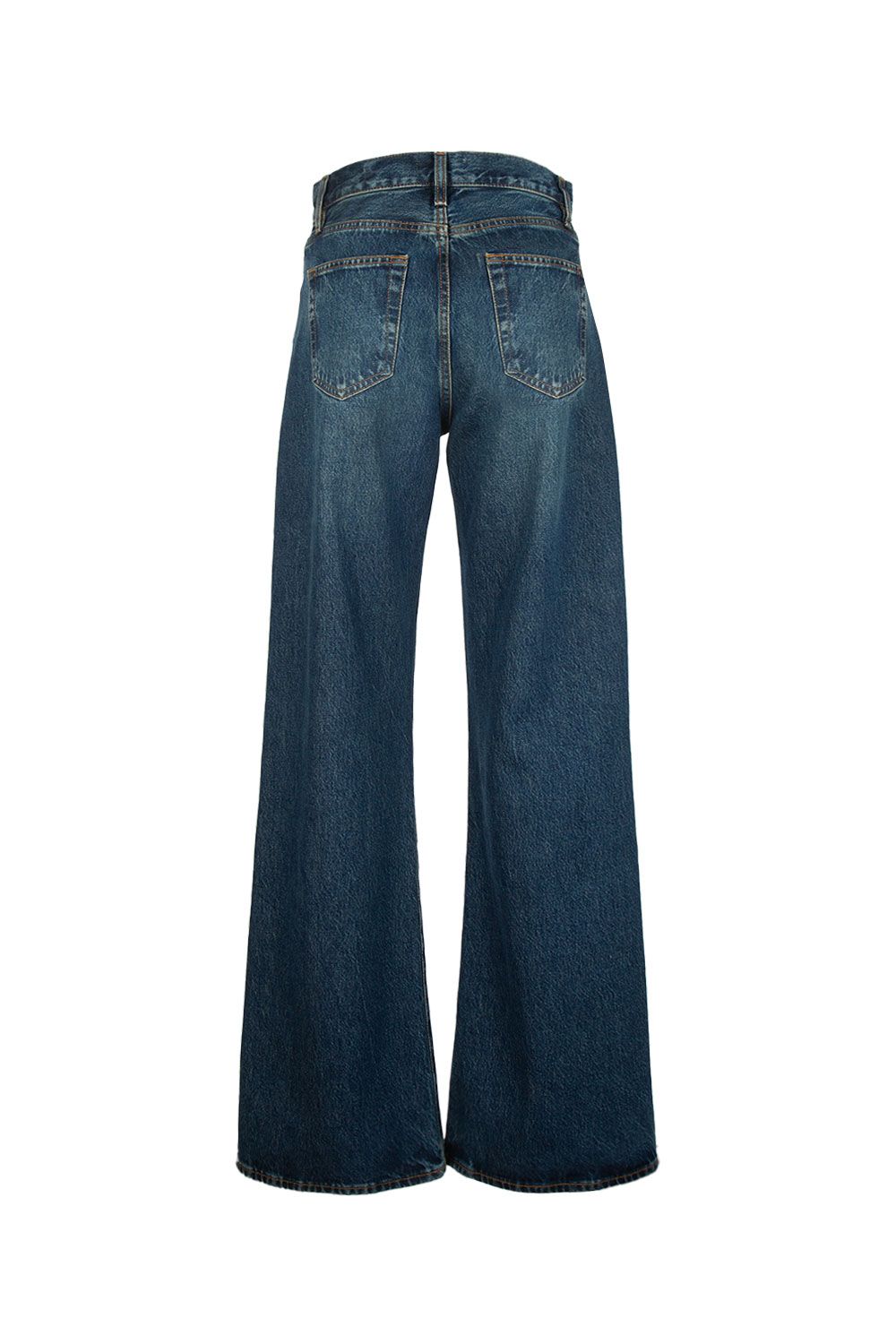 Jeans in denim di cotone azzurro medio a gamba ampia