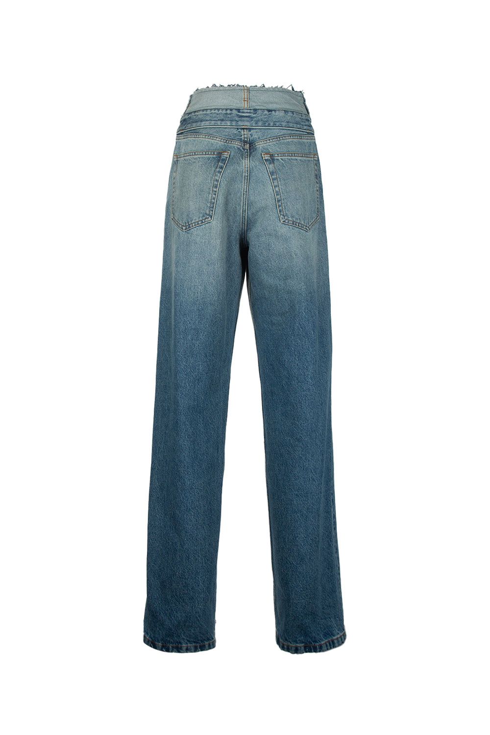 Jeans in denim azzurro scolorito con vita rovesciata a gamba dritta