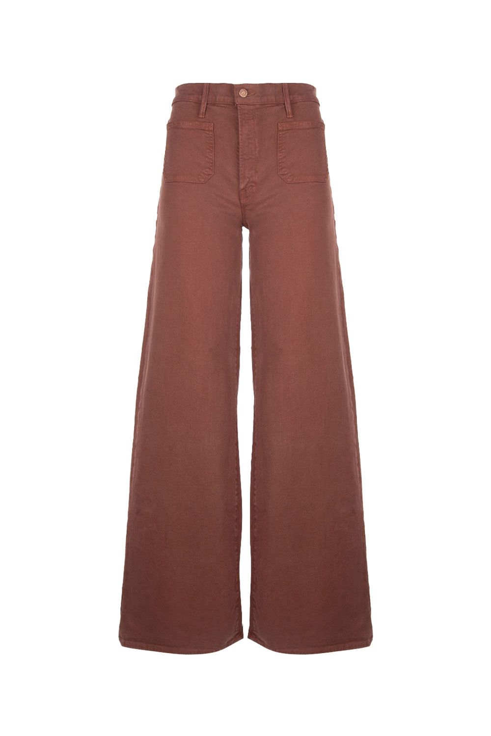 Jeans in denim stretch mattone, gamba ampia, vita alta e due tasche piatte frontali