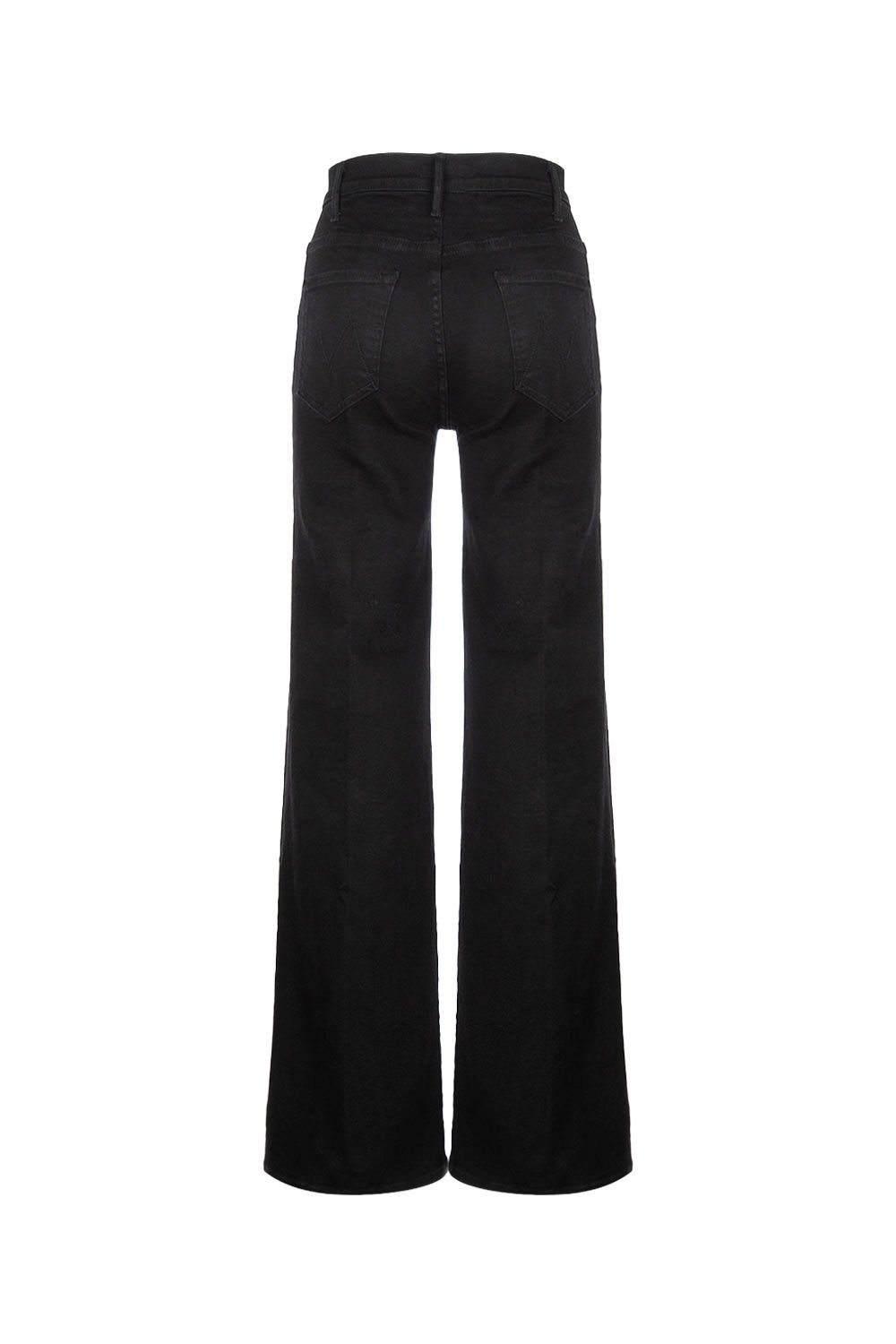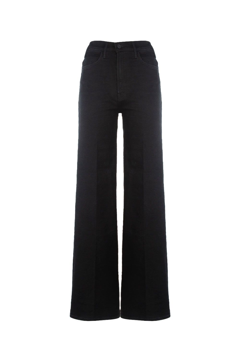 Jeans in denim stretch neri a gamba ampia e vita alta