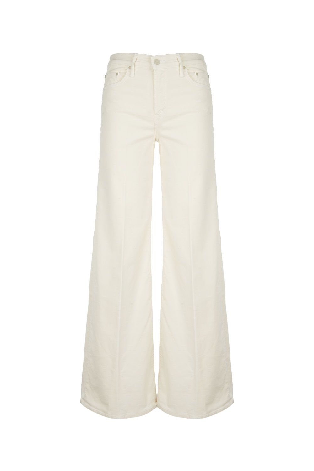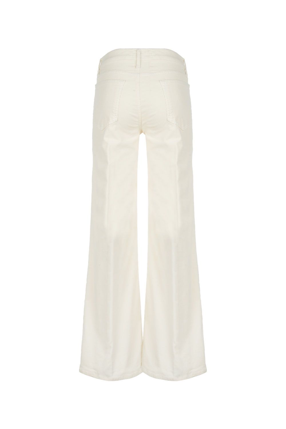 Jeans in velluto a costa sottile panna, gamba ampia e vita alta