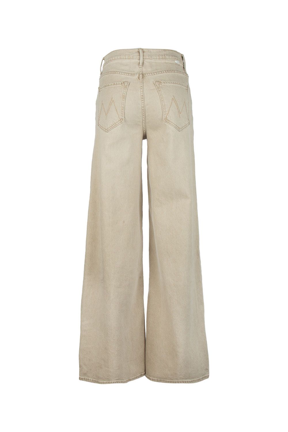 Jeans in denim di cotone beige a gamba ampia