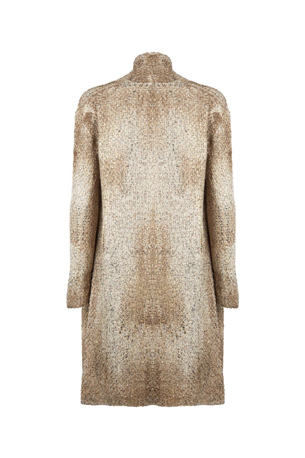 Cardigan midi in cotone sabbia laminato dorato con tasche frontali applicate
