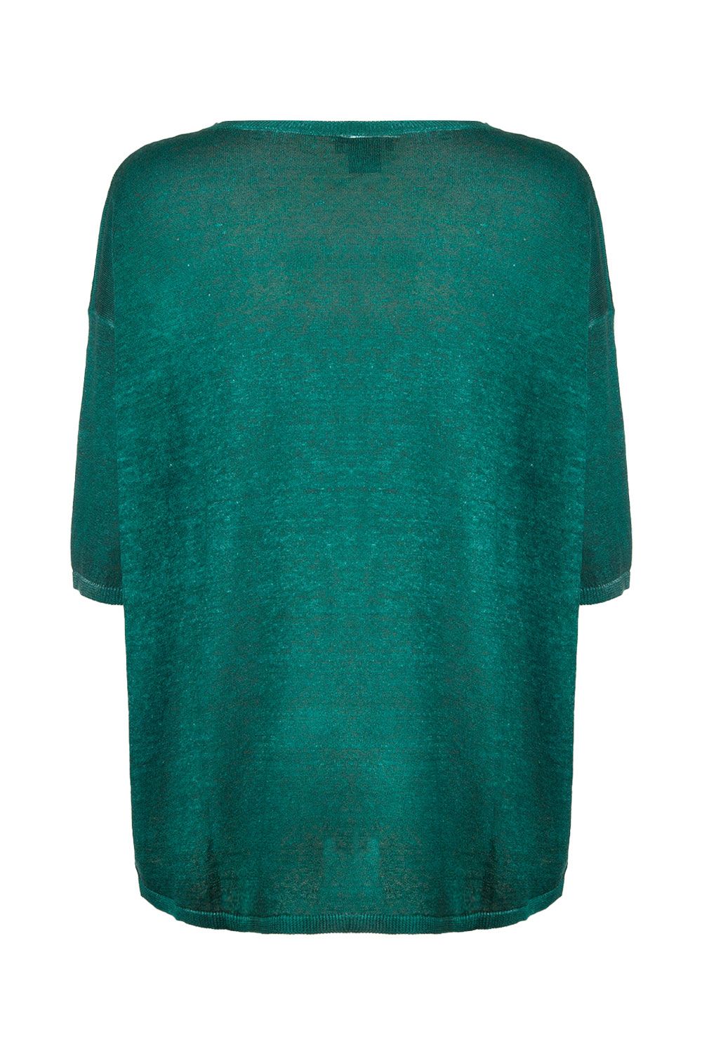 Maglia oversize in misto lino e cotone verde bosco tinto a capo a maniche corte con scollo a barca