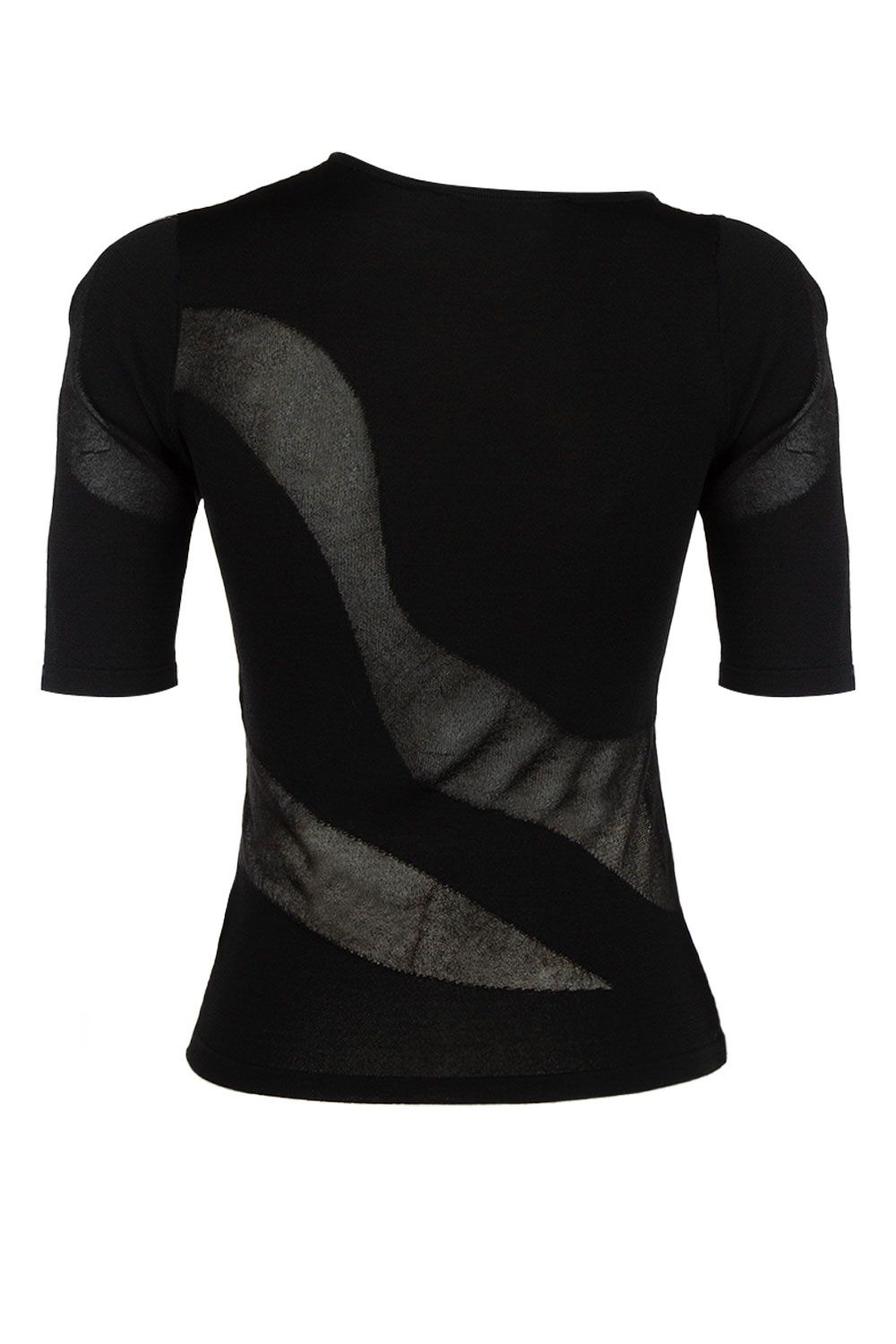 Maglia nera con inserti in mesh tono su tono con scollo asimmetrico