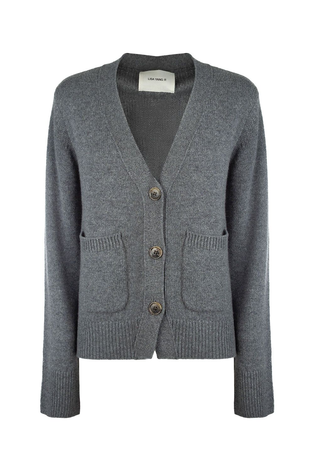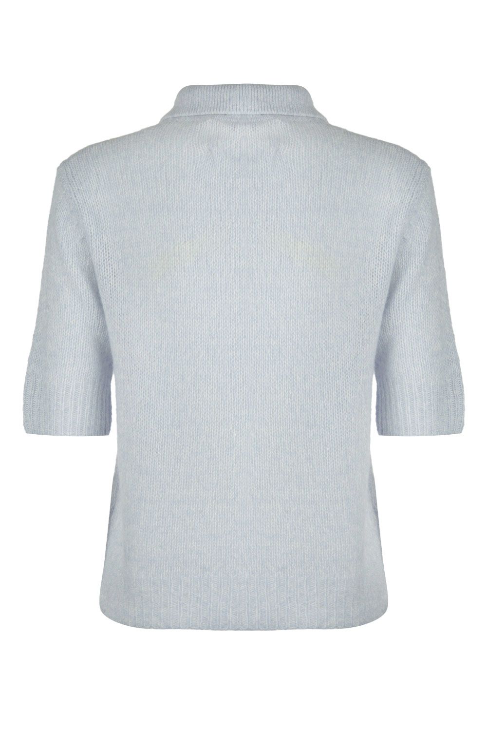 Maglia polo slim in cashmere e seta celeste polvere, due bottoni frontali, maniche corte, polsini e orlo a coste