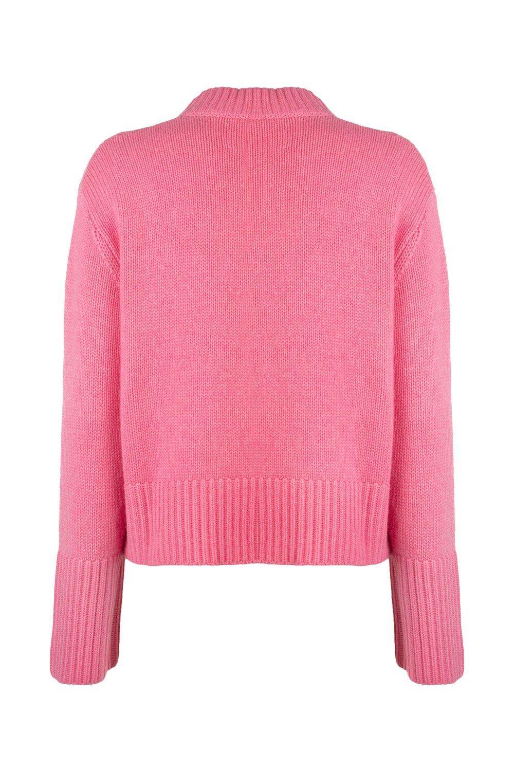Maglia girocollo boxy in cashmere rosa, collo polsini e orlo a coste