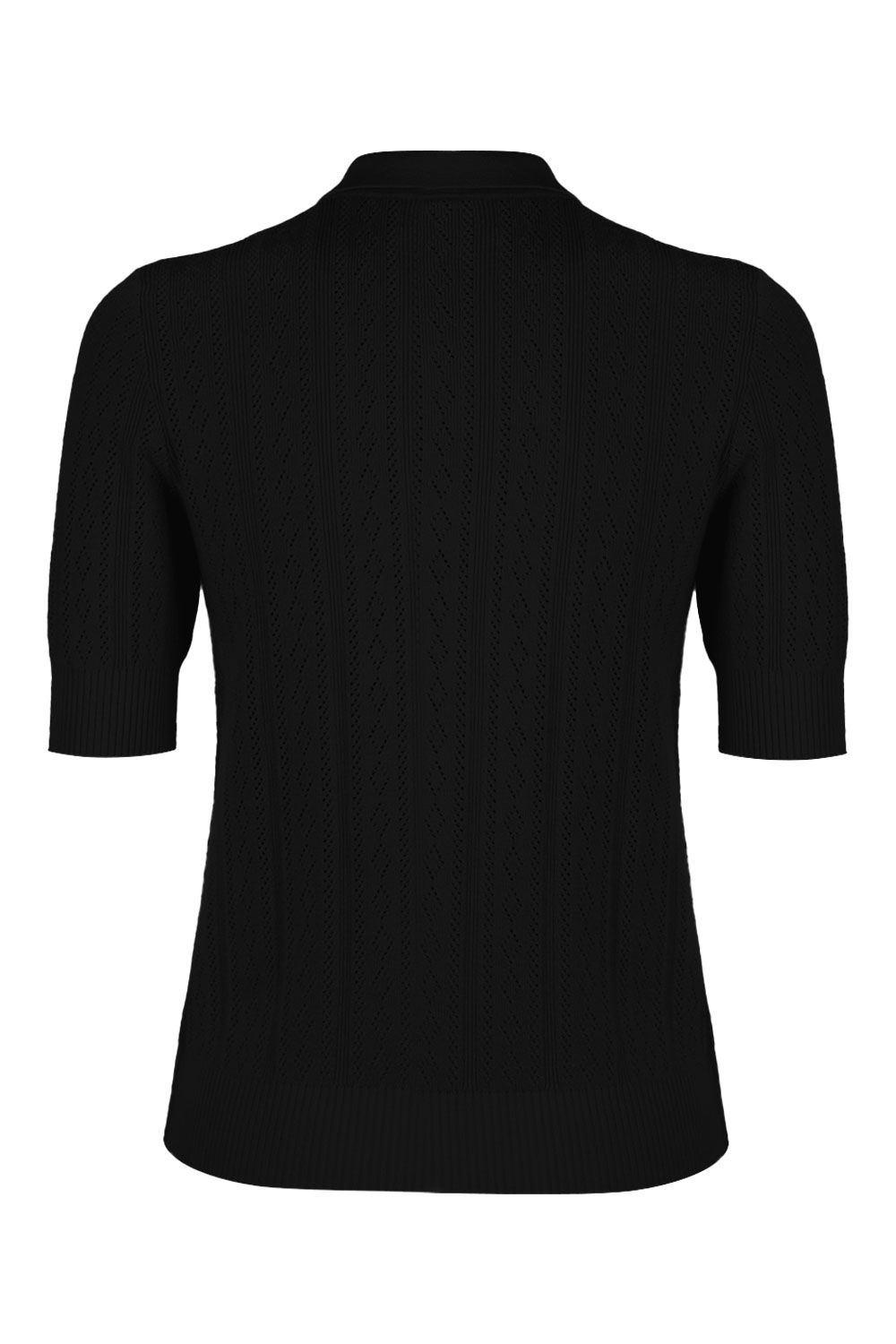 Polo in misto cotone e cachemire nera lavorata a punto aperto a maniche corte