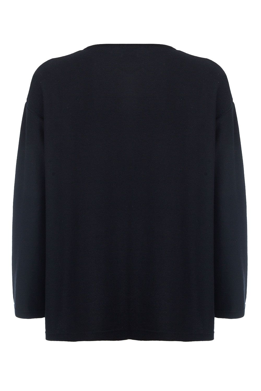 Maglia oversize girocollo in cordonetto di cotone blu navy con maniche lunghe e fondo asimmetrico con spacchi