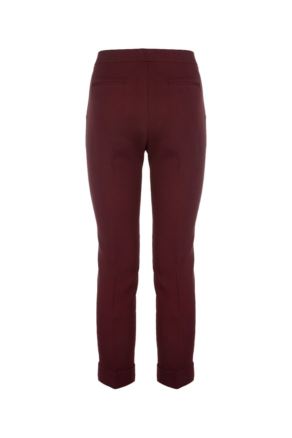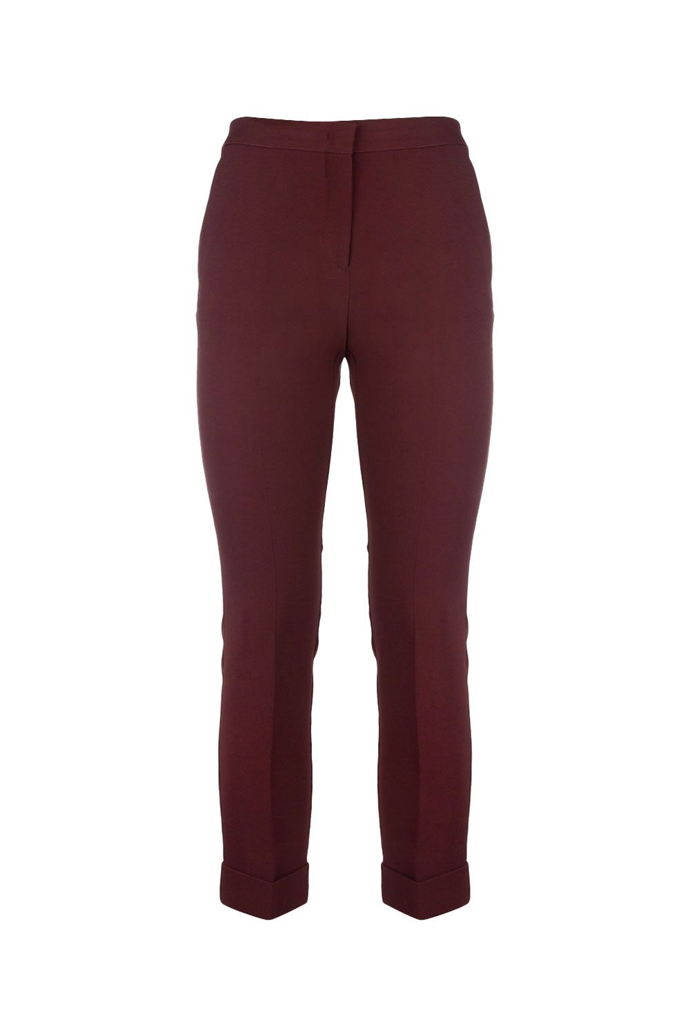 Pantaloni in misto viscosa burgundy gamba slim leggermente svasata sul fondo, tasche a filetto laterali e sul retro, chiusura con bottone gancio e zip