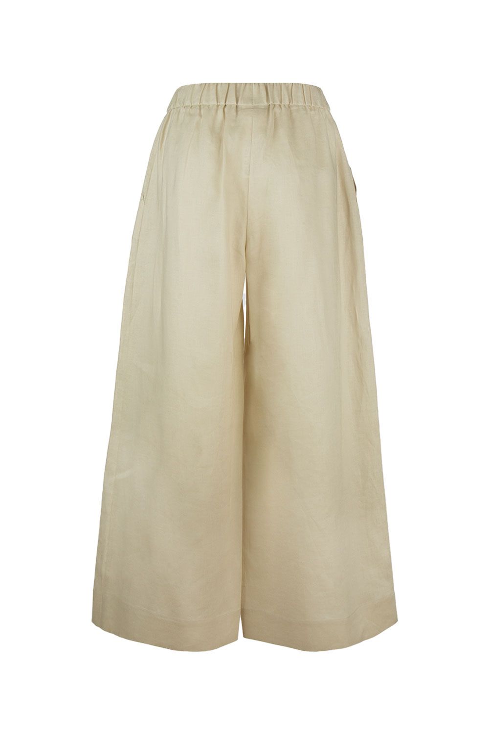 Pantaloni in tela di lino panna con vita elasticata a gamba ampia con tasche laterali